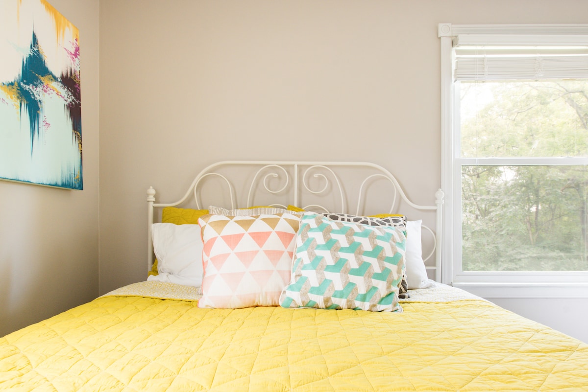 Modern olanaklara ve ağaç tepesi manzarasına sahip, rahat, zanaatkar tarzı bir bungalovda misafir süiti! Özel giriş ve teras ile ayrılmıştır. Tarihi ve modern Doğu Nashville'de bulunmaktadır: 5 noktaya, Fatherland'daki alışveriş merkezlerine, Shelby Parkı'na ve daha fazlasına 10 dakikadan az yürüme mesafesindedir. Şehir merkezine hızlı bir Uber yolculuğu. Geniş verandanın tadını çıkarın, büyük ayaklı küvetin keyfini çıkarın veya bahçede dinlenin. Doğu Nashville'i bu kadar benzersiz kılan tüm restoranlara, barlara, mağazalara, müziğe, galerilere yakındır.