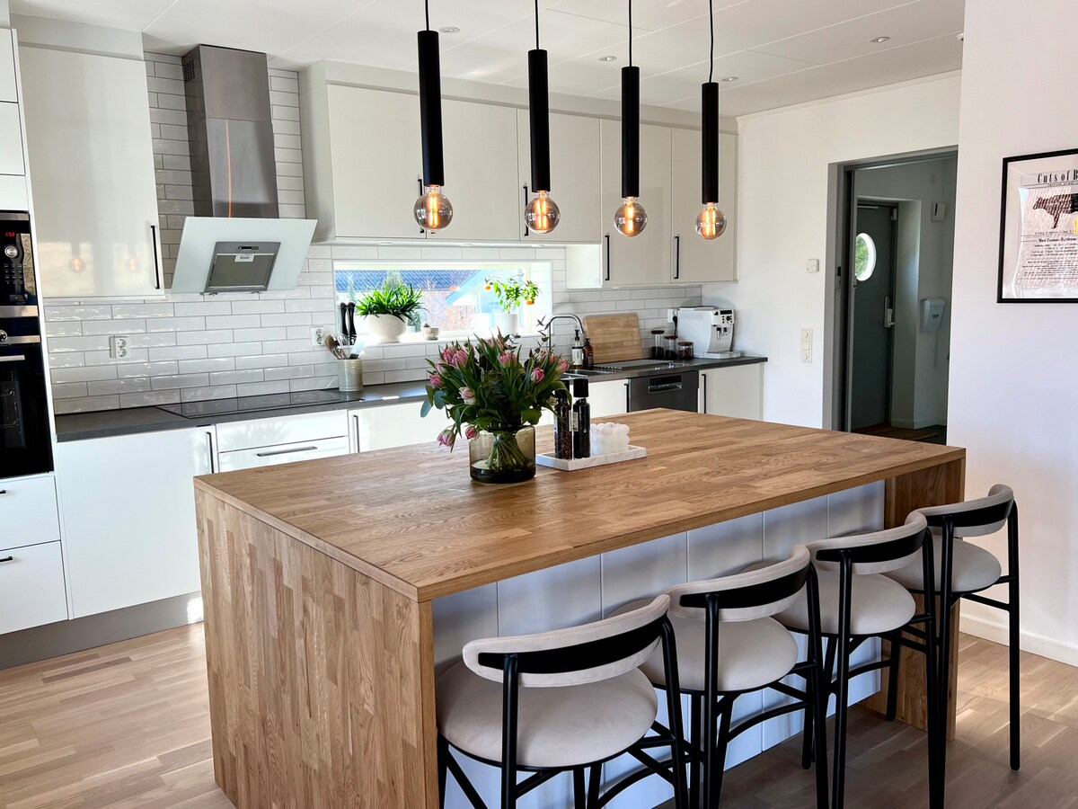 Manzaralı Öjersjö'de 190 m2 'lik bu lüks 2 katlı villaya hoş geldiniz. Burada Göteborg'un merkezine (Liseberg durağı) otobüsle 15 dakika mesafede doğaya ve göllere yakın bir yerde yaşıyorsunuz. Ev 2023 yılında inşa edilmiştir ve açık planlı 2 oturma odası, duşlu 2 banyo, 4 yatak odası ve barbekü akşamları ve şezlonglar için güzel bir veranda gibi birçok tesisi barındırmaktadır. Öjersjö'de yürüyerek, bisikletle veya daha kısa sürüşle ulaşabileceğiniz 3 yüzme dostu göl bulunmaktadır. Bölge aile dostu ve sessizdir.