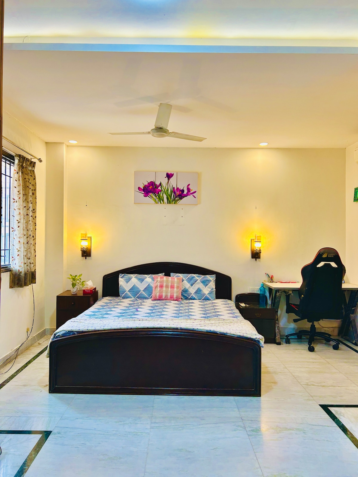 A cozy cabin designed for working professionals, located just 2 km from Cyber Hub in Cyber City. Perfect for business travelers, it offers peaceful surroundings while keeping you right on the main road near MGF Mall with several malls and conveniences within walking distance. Home-style meals are available, and you also have the option to cook your own. An ideal stay for comfort, work, and easy access.