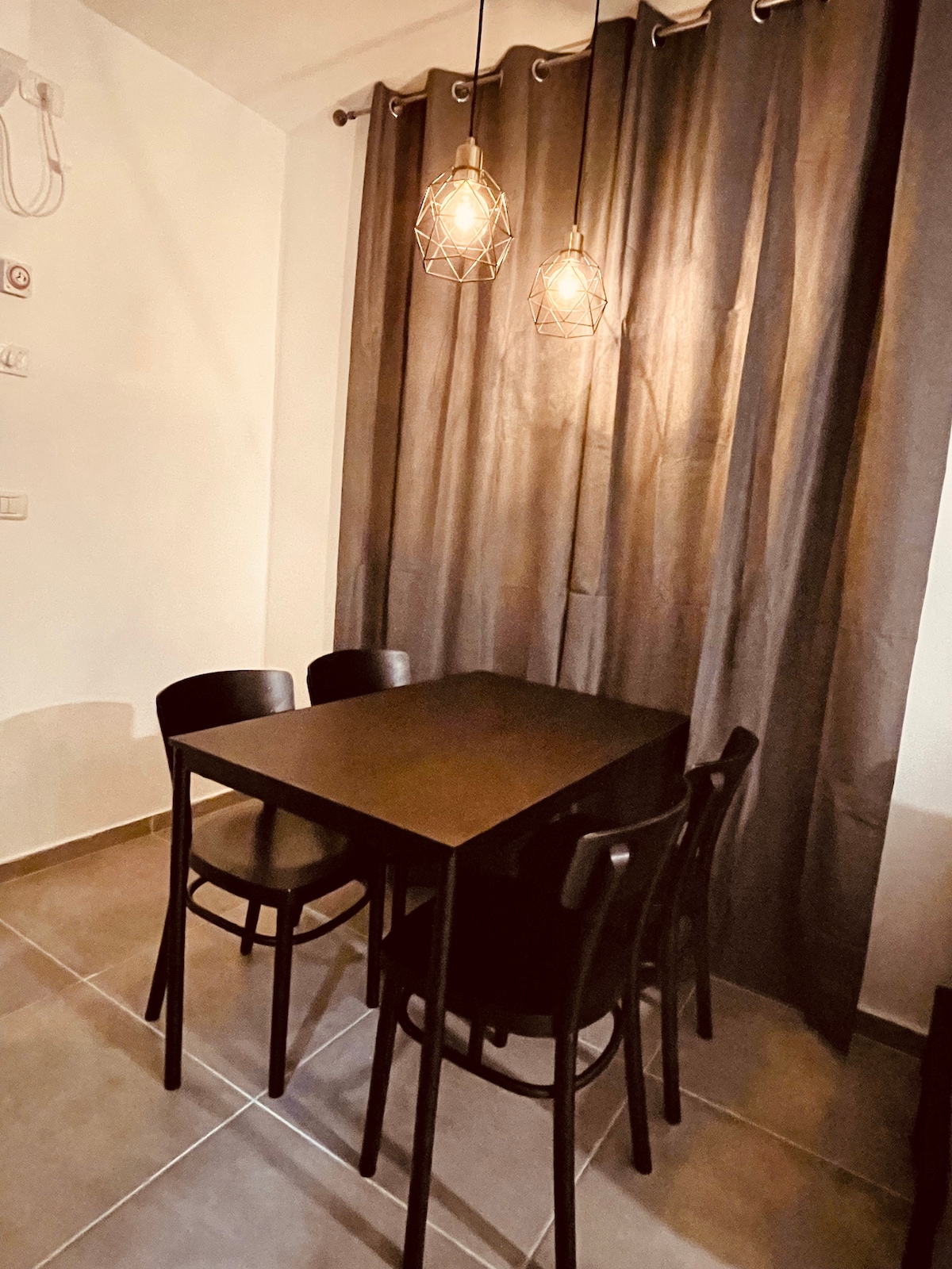 Dairemizin kullanışlı bir özel girişi vardır. Ayrı bir yatak odası (ailemle paylaştığım sığınak), geniş bir banyo ve ranzalı ve tek kişilik yataklı bir uyku alanına ve kanepe, Netflix ve Wi-Fi bulunan düz ekran TV’nin yer aldığı bir dinlenme salonuna bölünmüş bir yaşam alanı içerir. Mutfak alanımızda ekmek kızartma makinesi, elektrikli ocak ve büyük lavabo bulunmaktadır. Yemek masası koltukları 6. Klima ve birkaç vantilatör vardır. Tel Mond'da aile dostu böyle bir konaklama bulmak zor.