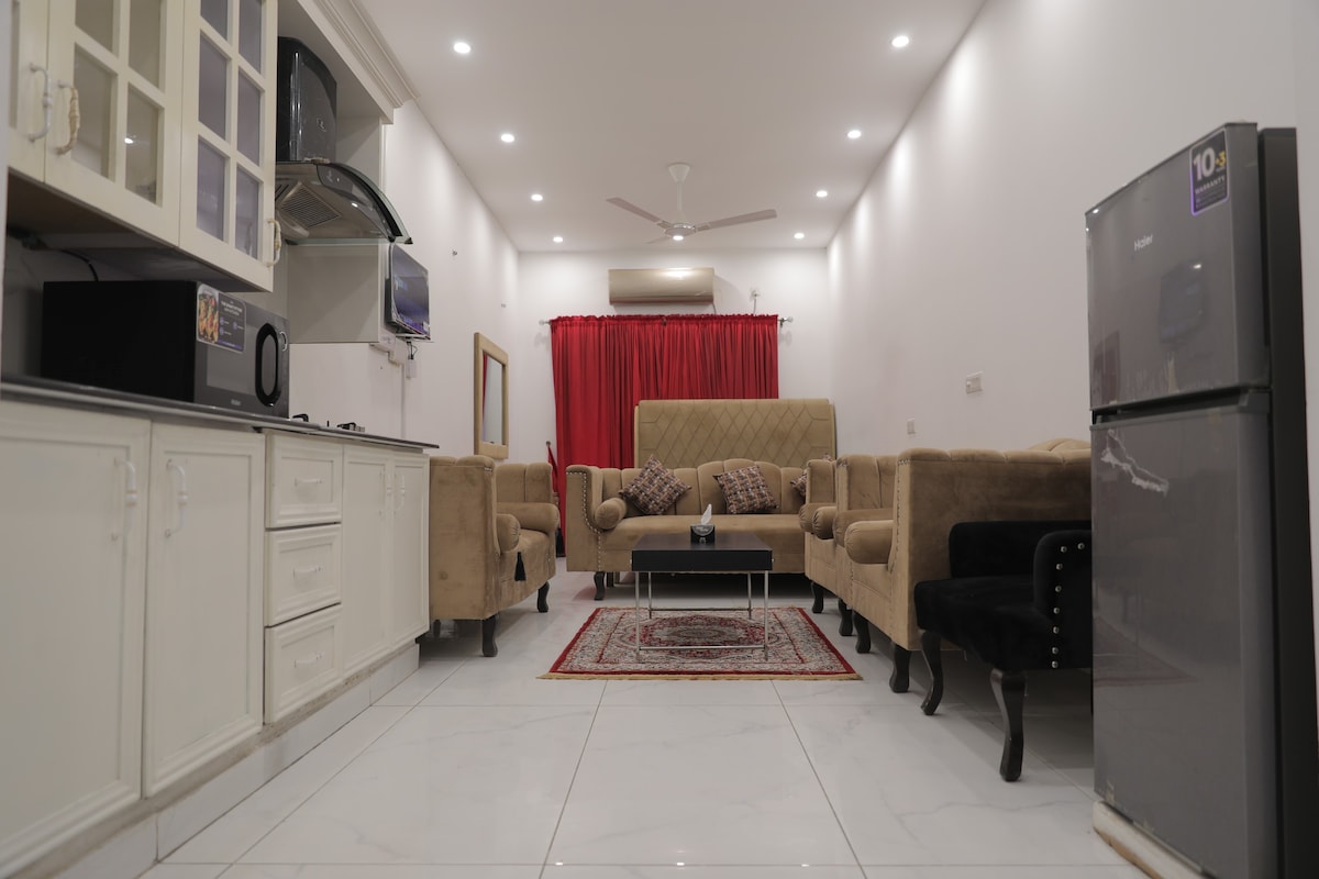 Wah Cantt, bir yatak odası, bir banyo ve geniş bir oturma odası içeren konforlu ve iyi tasarlanmış bir yaşam alanı sunmaktadır. Özel teras dinlendirici bir açık hava dinlenme alanı sunarken, balkon bahçeye bakıyor ve hoş, ferahlatıcı bir manzara katıyor. Burası sadece ailelere özel bir dairedir. Tek misafirler kabul edilir ve tüm sakinler için konforlu bir ortam sağlamak amacıyla evlenmemiş çiftler ağırlanmaz.