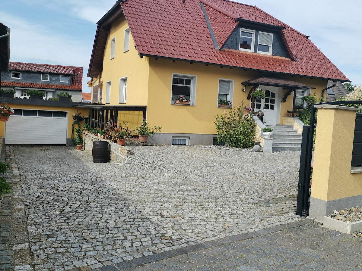 Sahibinin evi hemen yanında olan geniş yarı müstakil ev. Toplam yaklaşık 80-90 m² yaşam alanı. Her birinde bir çift kişilik yatağın yanı sıra bir çocuk yatağı/beşik bulunan iki ayrı yatak odası. 5 yetişkin ve 1 çocuk barındırabilir. Avlu ve bahçe her zaman kullanılabilir. Kablosuz internet ve iki LCD TV mevcuttur. Harz'a çok yakın gezinti olanakları. Ev, trafiği azaltılmış bir çıkmaz sokakta bulunmaktadır. Montajcılar/iş için konaklamalar için de kullanılabilir.