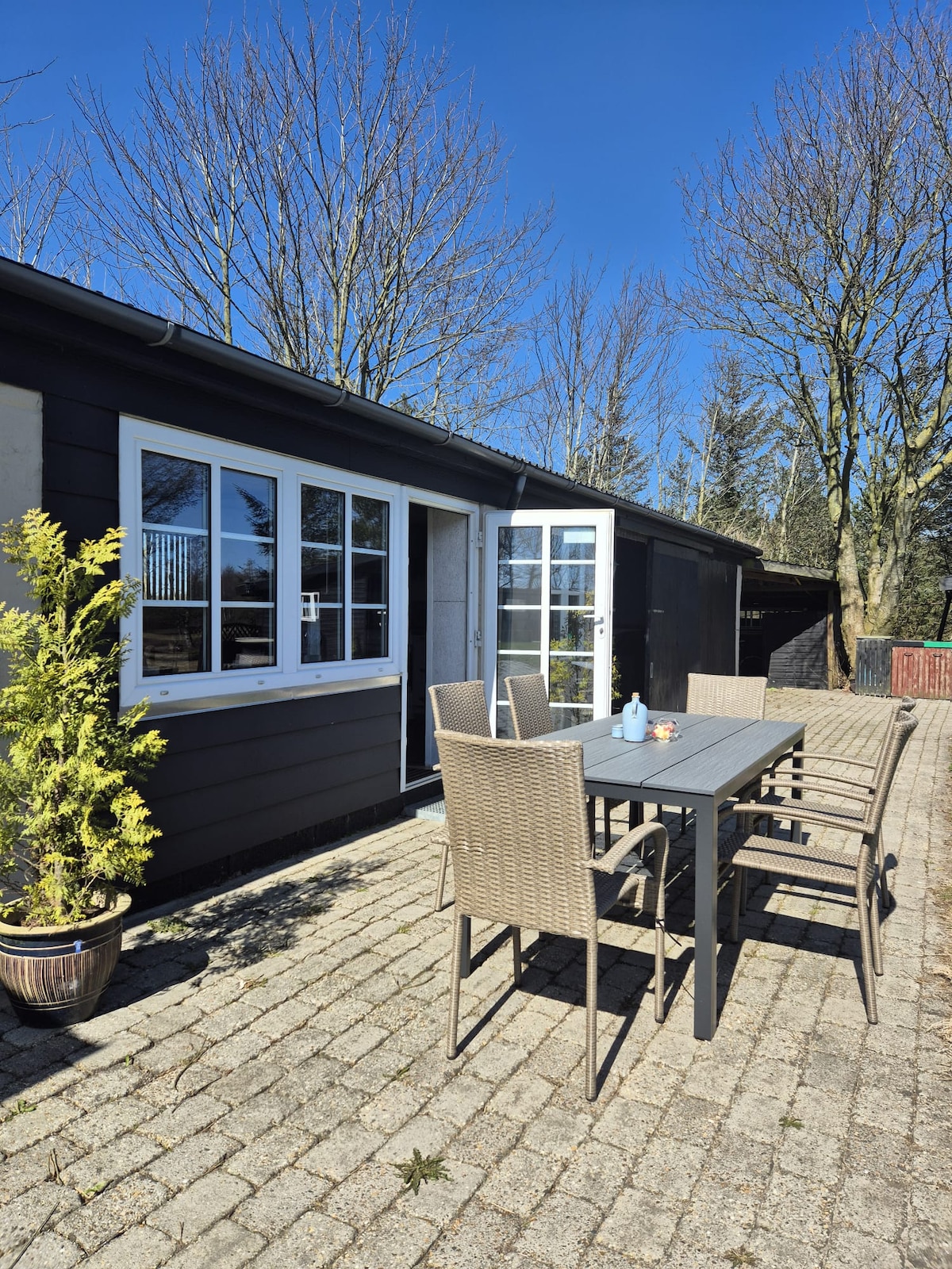 Güzel göle doğru, kendi küçük yaşlı ağaç ormanınızda, rahat bir kulübede dinlenin. Huzurlu özel cennet, Legoland'e sadece 20 dakika mesafededir ve yemek masasının yanındaki bank Lego Duplo ile doludur;) Gündüz yatağı bulunan kapalı teras, yeni odun sobası, yıldırım hızında internet ve büyük akıllı TV, her türlü hava koşulunda tatil sağlar! Parklarda yoğun bir günün ardından buna bayılacaksınız:)
