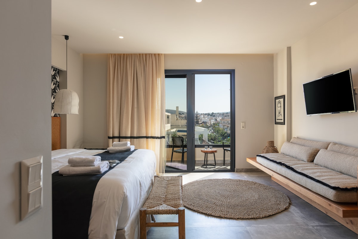 Deluxe Kategori, yenilenmiş Luxurius Odaları, konforlu ve iyi donanımlı, deniz manzaralı Notos Heights Hotel & Suites'te özel ve yeni bir kategoridir. Balkon ile koltuklar, Wi - Fi internet erişimi, güvenli kutular da dahil olmak üzere keyifli bir konaklama için gerekli tüm olanakları içerir.