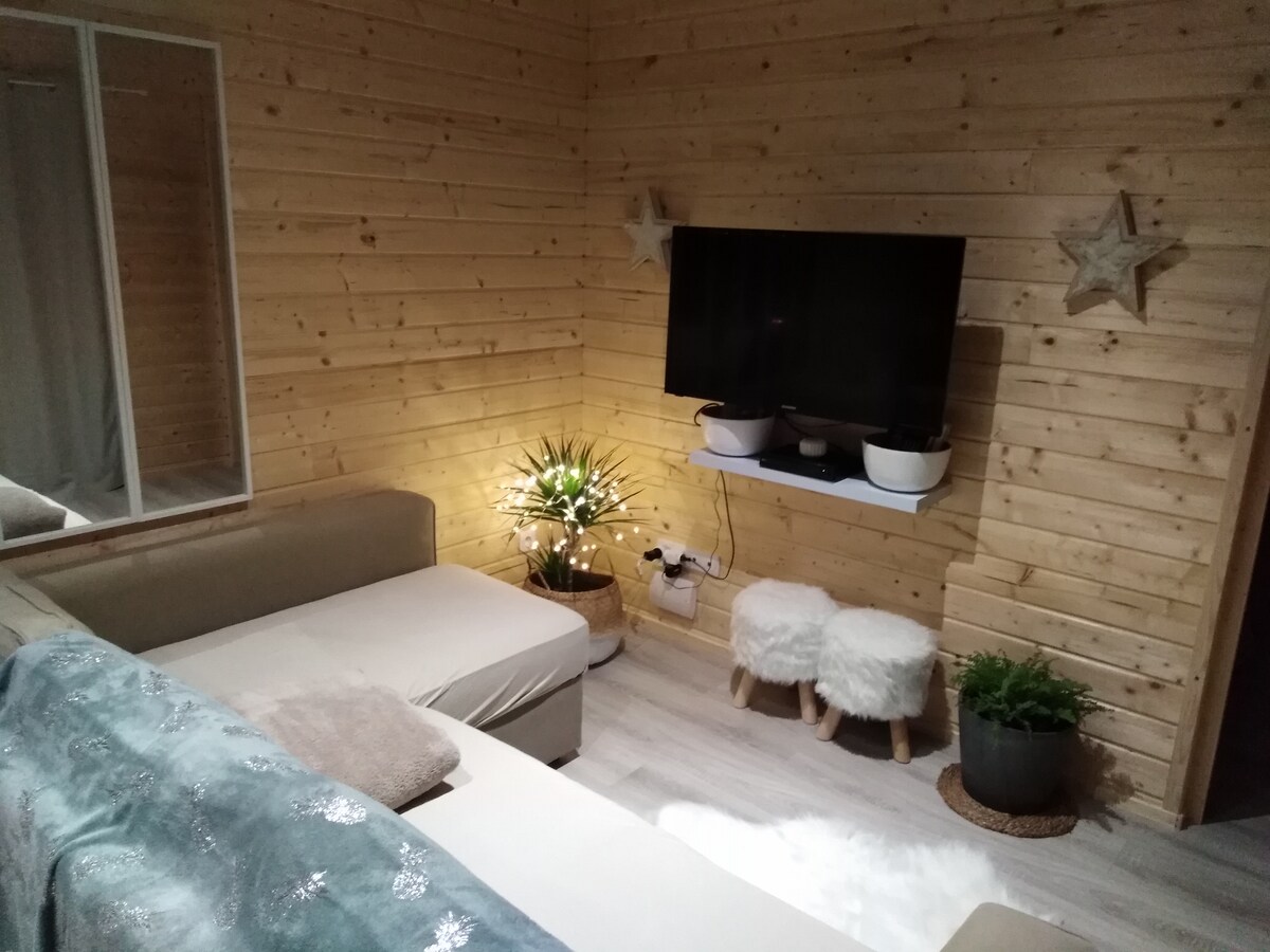 Ahşap evime hoş geldiniz... Sıcak ve konforlu, bu güzel bölgeyi ziyaret etmek için bir hafta sonu birkaç gün kalabilirsiniz ya da sadece profesyonel nedenlerle... Ev, 160 yataklı bir yatak odası (kanepede uyumak yasaktır), donanımlı mutfaklı bir oturma odası ve bir banyodan oluşmaktadır. Aynı arsa üzerinde başka bir ahşap yapı daha bulunmaktadır ancak bahçe ve otopark paylaşılmamaktadır. Herkesin kendi yeri var 😊