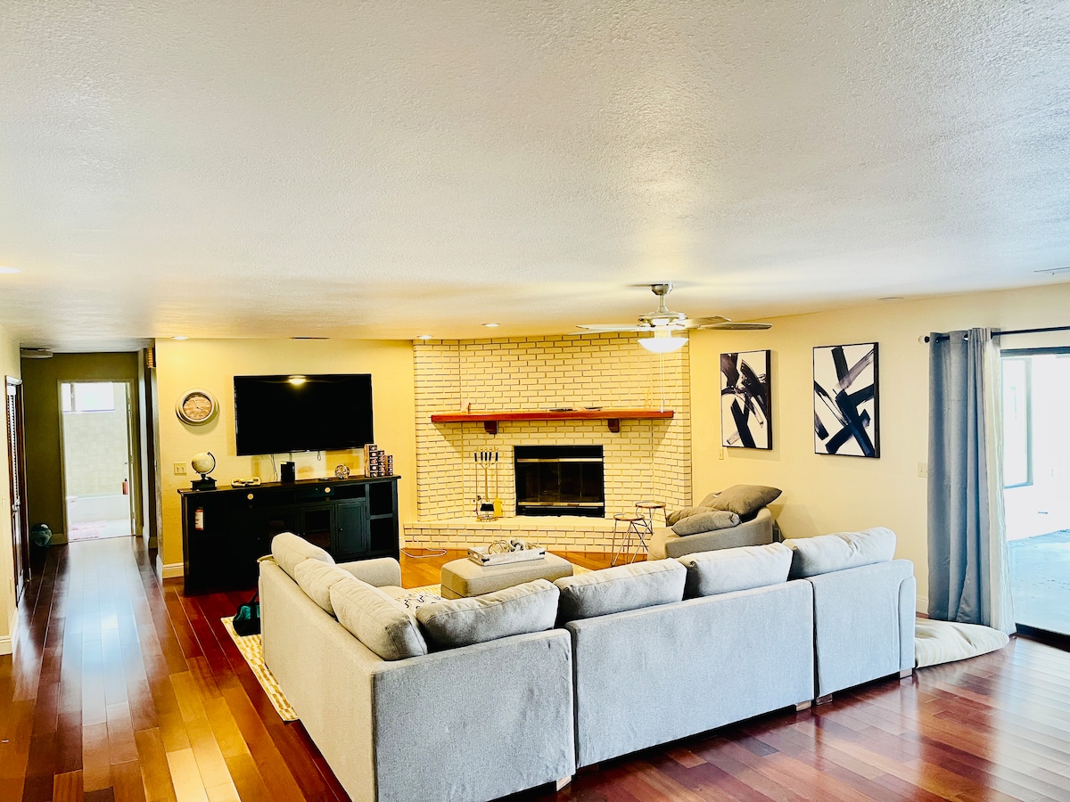 King boy yataklı yeni yenilenmiş ev! Victorville'in göbeğinde, güvenli ve dost canlısı, merkezi bir konumda bulunan geniş dört yataklı/üç banyolu ev! Evin tamamı, şık modern vurguları ve mobilyalarıyla lüksün gerçek tanımıdır. Tam donanımlı ev, lüks bir yaşam alanı, yüksek hızlı kablosuz internet bağlantısı, akıllı TV, kahve makinesi, çamaşır makinesi + kurutucu, bilardo masası ve daha fazlasını sunar! Restoranlara, Victorvalley Alışveriş Merkezi'ne, Scandia'ya, sinemalara, 15 FW, 395 HWY, Ontario Mills ve Havalimanı'na yakın.