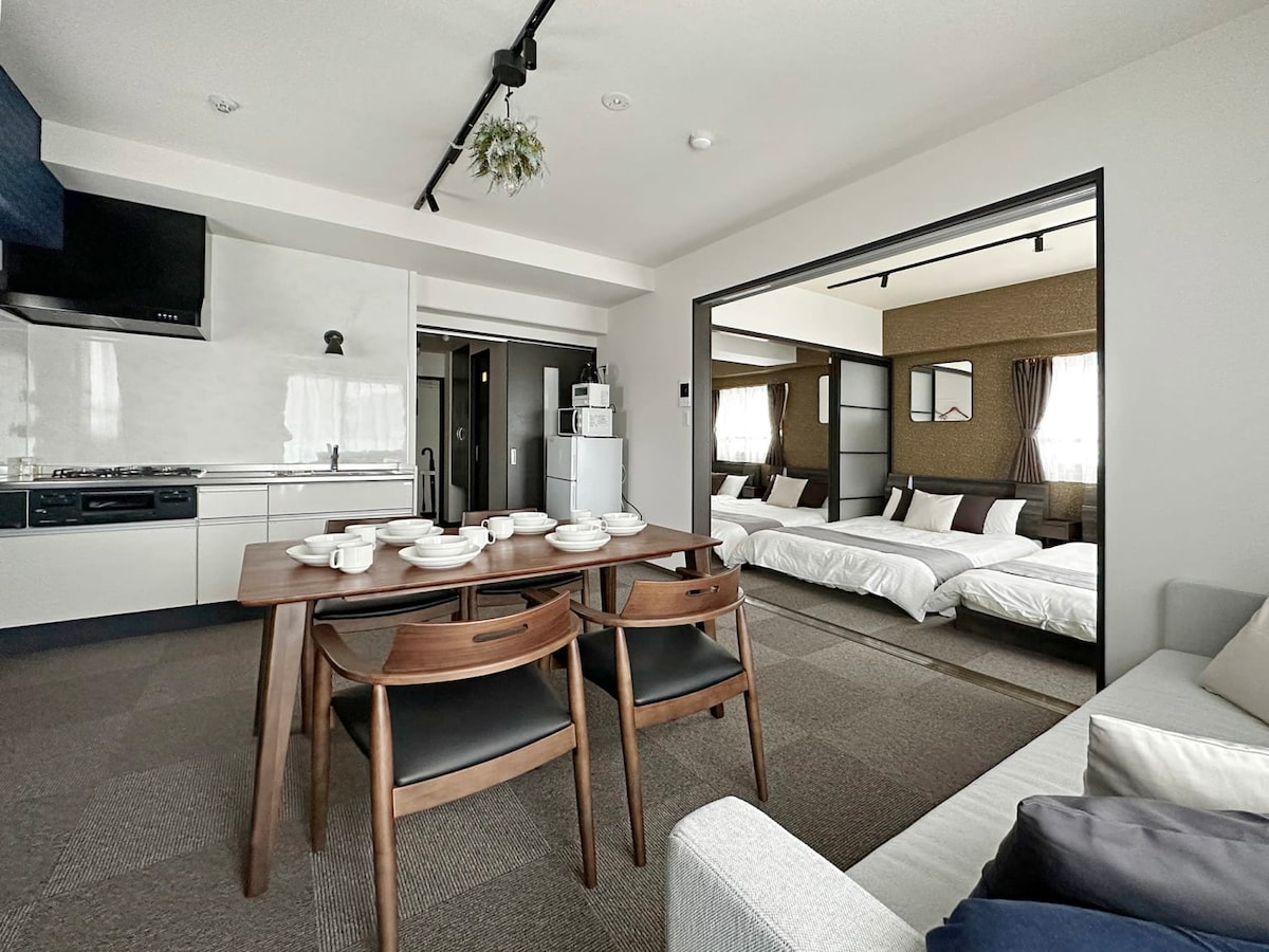 Burası Hiroşima'nın göbeğinde, Barış Parkı'na sadece 7 dakikalık yürüyüş mesafesinde harika bir konum. Hiroşima'da bir günlük gezi yaptıktan sonra dinlenmek için ideal bir yerdir. Girişte güvenlik için otomatik kilit bulunmaktadır. 2 yatak odalı daire ・Yatak odası 2 - 2 çift kişilik yatak · ・Bir adet çift kişilik çekyat ・mutfak ・tuvalet ・banyo * Çekyat için ek yatak takımı mevcuttur. *Lütfen yedek yatak takımlarını kendiniz kullanın. Odada toplam 6 kişi kalabilir.