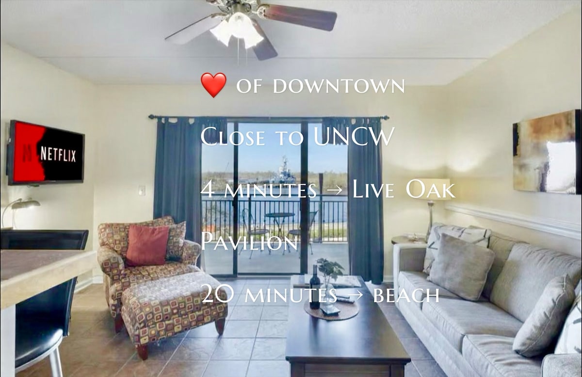 Cape Fear Nehri'ne bakan özel balkonunuzda, USS North Carolina Savaş Gemisi'nin inanılmaz manzarasıyla rahatlayın ve insanları izlemek için mükemmel bir yer! Canlı şehir merkezinin tadını yürüyerek çıkarmak için rakipsiz bir yer. River District'te çoğu 5-10 dakikalık kolay bir yürüyüş mesafesinde olan 40'tan fazla yerel restoran, pub ve kafe bulunmaktadır. Kongre Merkezi 10 dakikalık yürüyüş mesafesindedir. Live Oak Pavillion 20 dakika yürüme mesafesindedir. Yakındaki kapalı güverteye park kartı dahildir.