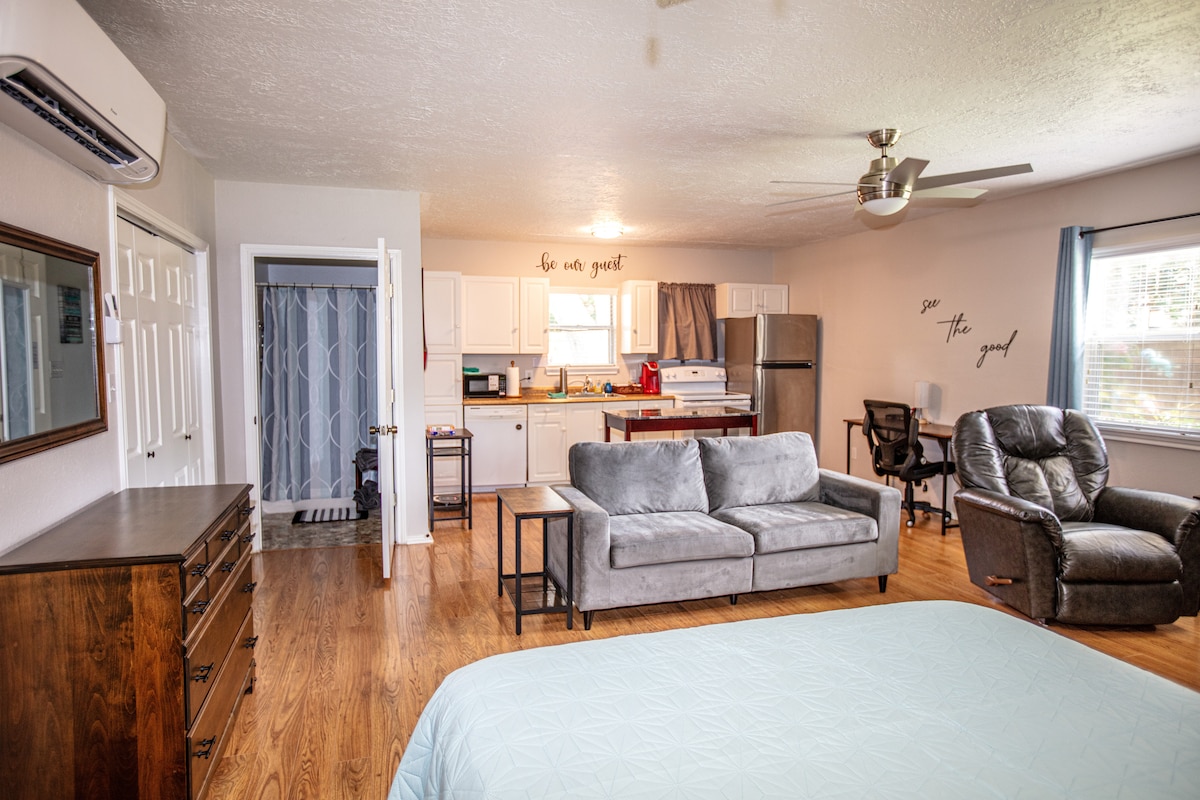 Experience true hospitality at my English style Cottage by the Sea. The space feels like a cozy suite in an upscale hotel . Inside you will enjoy a comfortable cottage vibe , King size bed with luxury linens , fully equipped kitchenette and quaint dining area , tub and shower combo in the bathroom . Enjoy warm gulf breezes from the private patio. Our specialty is to provide an intimate space for you to create beautiful memories. Minutes from beach 🏖️ and all Galveston has to offer.