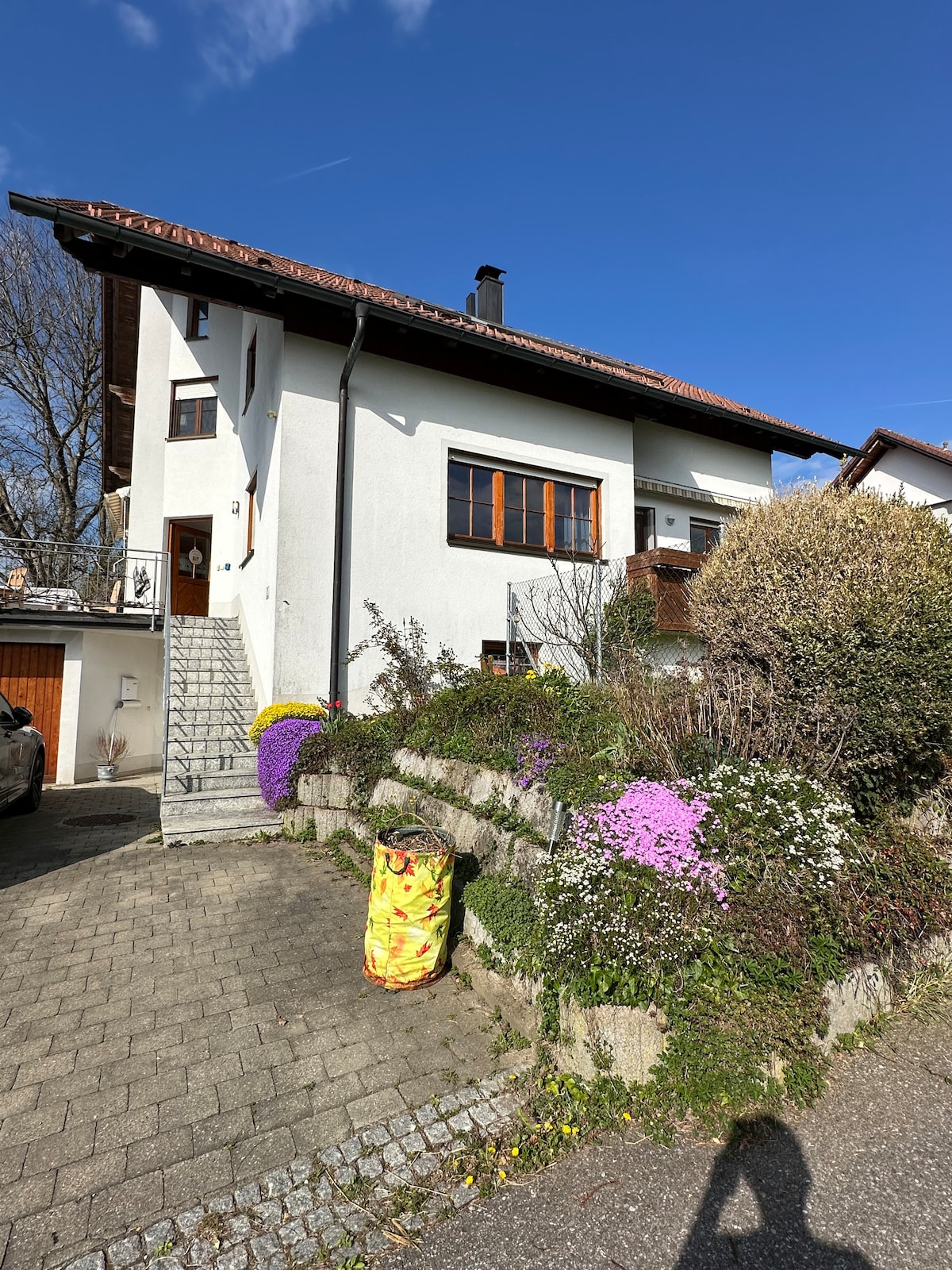 Bitişik FFH bölgesine bakan misafir dairesi, evimizin ayrı bir girişine sahip ayrı bir bölümünde (ses geçirmez kapı) bulunmaktadır. Daireye istediğiniz zaman kod girerek girebilir ve kod girerek kapatabilirsiniz. Oda ve banyoda yerden ısıtma ve yazın soğutma mevcuttur. İstek üzerine bebek yatağı (120x60 cm) ve mama sandalyesi temin edilebilir. Sauna da rezerve edilebilir (bir slot için 25 €, yakl. 3-4 saat, sauna havluları dahil).