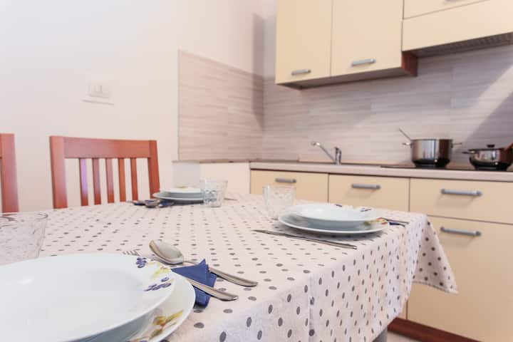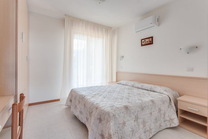 Aparthotel'de iki odalı daire, denize 200 metre mesafede, bir yatak odası, donanımlı küçük mutfaklı oturma odası, özel banyo ve balkon. Fiyata nevresim takımları ve banyo, klima, özel kapalı otopark, yüzme havuzları ve açık hava jakuzisi (yaz), ücretsiz plaj için fitness sahası ve plaj havluları dahildir. Dahil değildir: Gecelik 2,00 € tutarındaki turist vergisi (14 yaşın altında muaf)