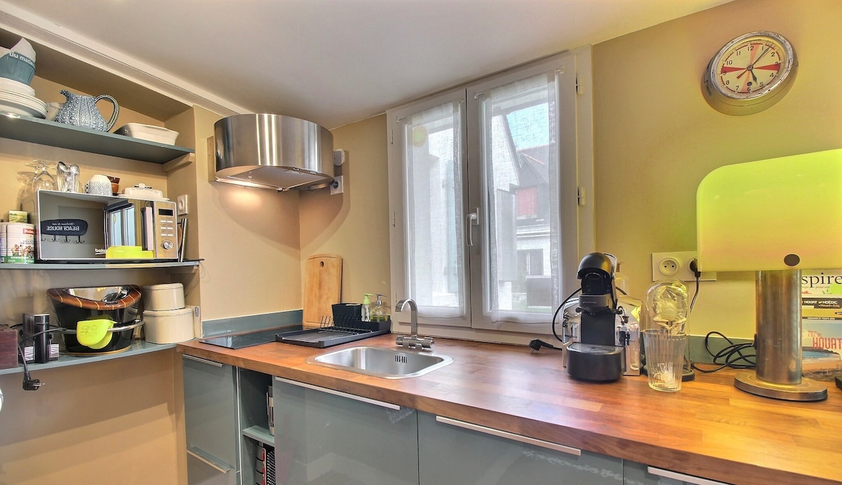Gelin ve rahatlayın ve bu küçük cennetin tadını çıkarın. Şehir merkezi ile büyük Gouret plajı arasında ideal bir konuma sahip olan bu eşsiz ve sakin konaklama yeri, bu muhteşem Ile de Houat'ın keyfini çıkarmanızı sağlar. Barbekülü bir bahçe ortaktır ve dış mekanların tadını çıkarmanızı sağlar.