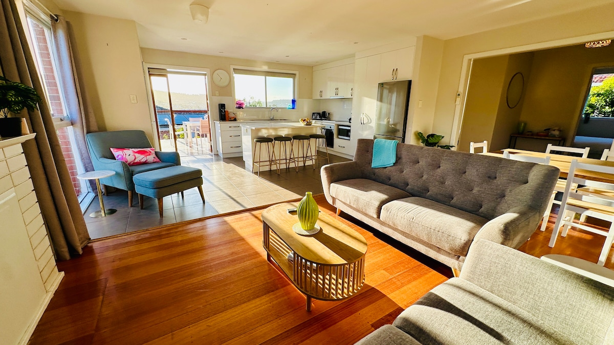 Spacious, and modern living with a view to die for! 15 mins to airport and Hobart city. Featuring: 2 spacious bedrooms, 1 will walk in wardrobe and an en-suite with its own spa bath, with beautiful views of the Derwent River, Mount Wellington, Hobart City and the casino. 2 separate living rooms, open area to modern kitchen, balcony and the back garden with a full size jacuzzi. All again with mesmerizing views. Separate entrance and complete privacy.