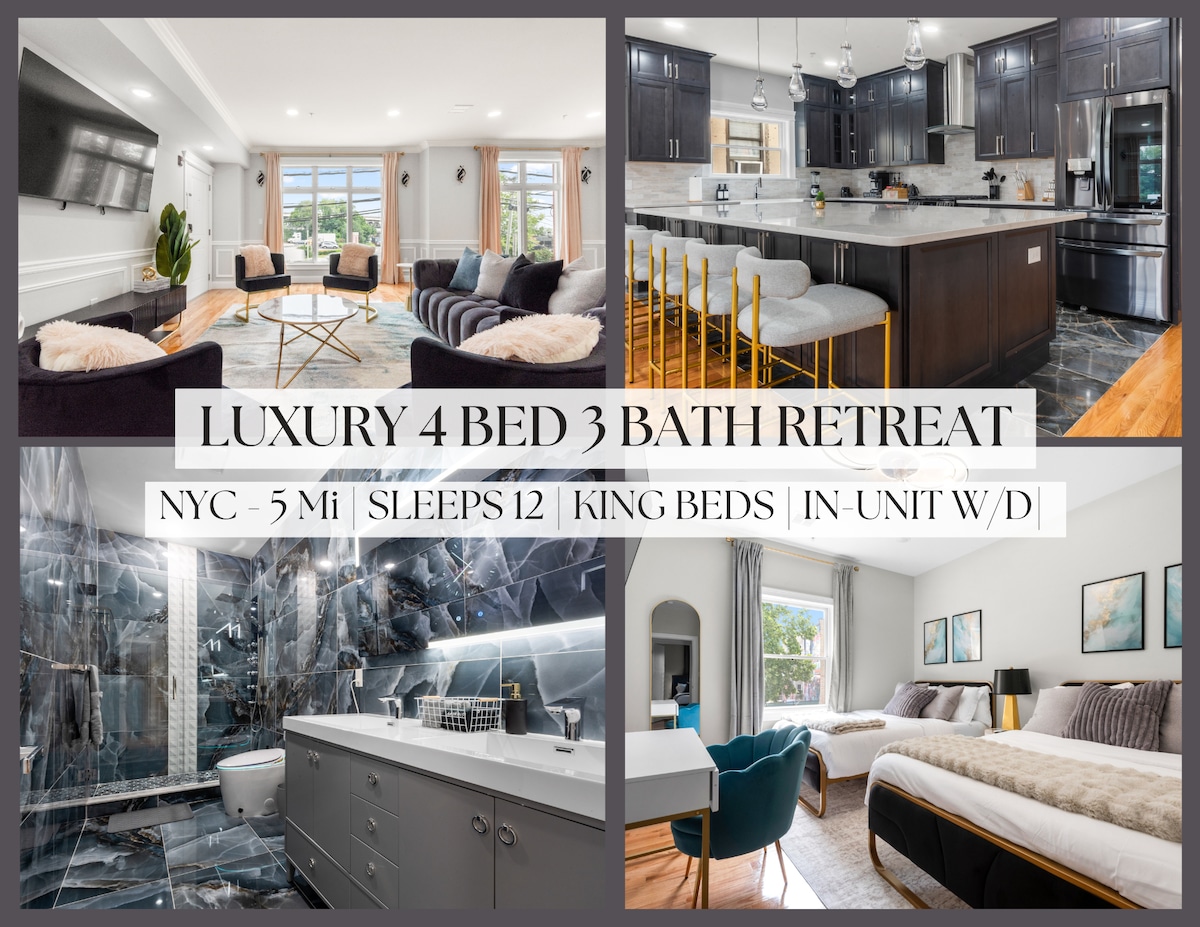 Lüks 4 Yatak Odalı/3 Banyolu İnziva • New York'a Dakikalar İçinde • Ünite İçi Çamaşır Makinesi