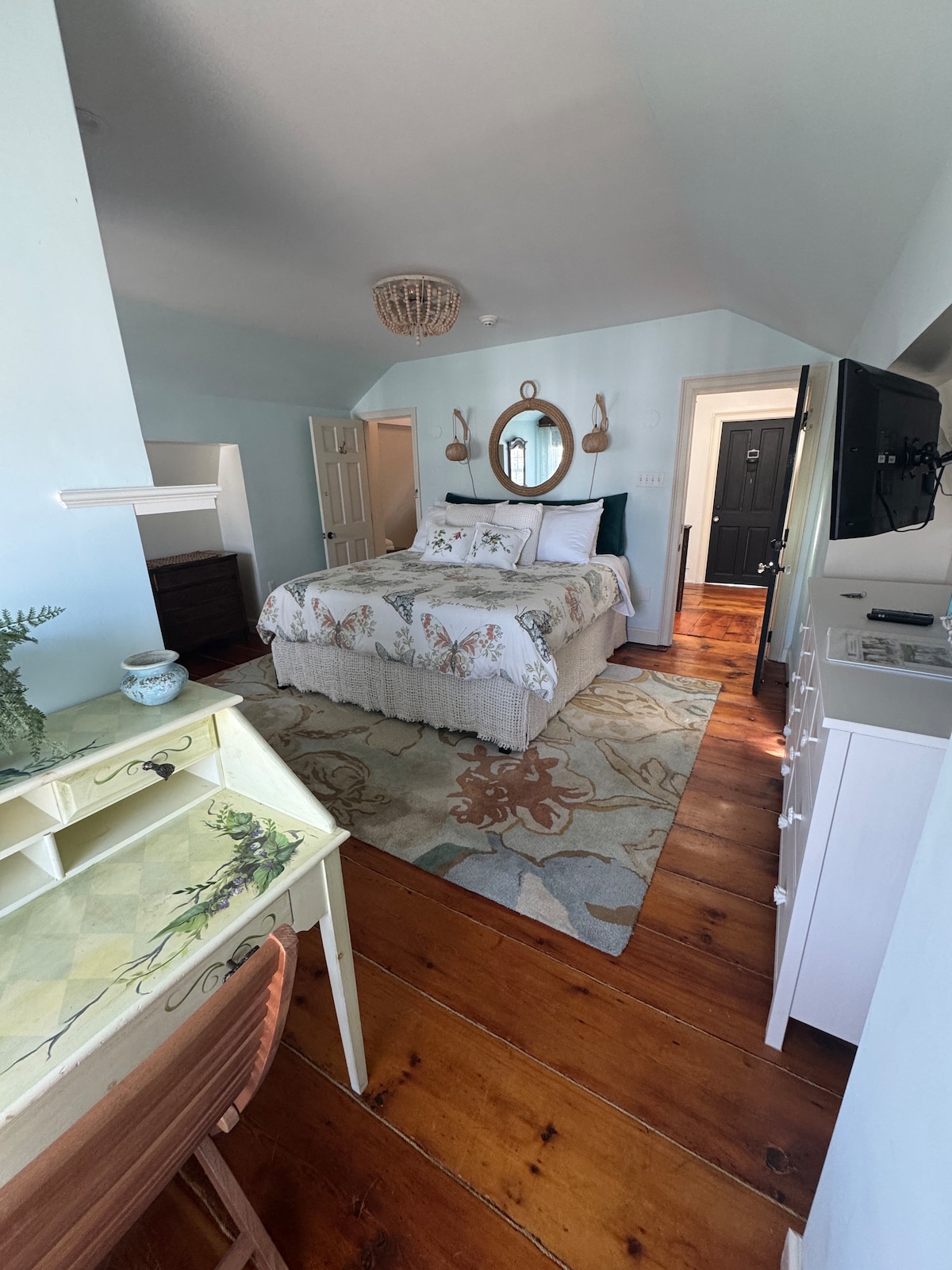 Zamanda geriye giderek, sıcak Hudson Valley kırsalında huzurlu bir hafta sonu tatilinin tadını çıkarmanızı bekliyoruz. Çatı katı, ebeveyn banyolu ve özel girişli, geniş, konforlu, çok özel bir odadır. Ev 1751 yılından beri misafir ağırlıyor ve bu konukseverlik tarihini sizinle paylaşmaktan mutluluk duyuyoruz. Konumumuz Orta Hudson Vadisi'nin tam kavşağında, Rhinebeck, Kingston sahili veya Kingston Stockade Bölgesi'ne arabayla sadece birkaç dakika, Woodstock veya Bard College'a 15 dakika sürer. Ayrıca, birlikte seyahat eden ve iki odaya ihtiyaç duyan kişiler veya aileler için mülkte güzel bir şekilde döşenmiş başka bir oda daha bulunmaktadır. Oda ve kahvaltı olarak kabul edilsek de kahvaltı beklemeyin. Odanızda bulabilecekleriniz: Bir kâse mevsim meyvesi ve bazı yerel unlu mamuller, bir Keurig kahve makinesi ve sabahınıza yarım yarım ve yoğurtla başlamak için küçük bir buzdolabı. Bahçe alanı ve teras. Misafirlerimizin yolundan çekilmeye çalışıyoruz, hatta çoğu zaman bir anahtar bırakmayı bile ayarlıyoruz. Misafirimizin istediği zaman, baskı veya zaman çizelgesi olmadan gelebilmesini istiyoruz. Bununla birlikte, her zaman sadece bir telefon kadar uzaktayız ve neleri görmeniz, nerede görülmeniz ve yemek yemek için harika yerler konusunda uzman tavsiyesi verebiliriz. Bölgede yapılacak şeyler konusunda sıkıntı yoktur, bu nedenle seçenekleri belirlemek için bilgili bir yerel ev sahibinin yardımcı olması yararlıdır, sormaktan korkmayın! Benjamin Ten Broeck Evi, Kingston'ın hemen kuzeyindeki Flatbush Yolu üzerinde bulunmaktadır. Rhinebeck ve Kingston'a kolay erişimi olan ev, Saugerties ve Woodstock'a da yakındır. Amtrak ve Uber artık kullanılabilir! Rhinecliff tren istasyonuna 10 dakikalık mesafede. Olağanüstü temiz, konforlu mobilyalarla iyi donatılmış, İngiliz kırsal yaşam motifleri, kaliteli nevresim takımları ve mükemmel mahremiyet. Kolay konfor ve rahatlama için tasarlanmış bir alanda kendinizi zaman içinde kaybedin!