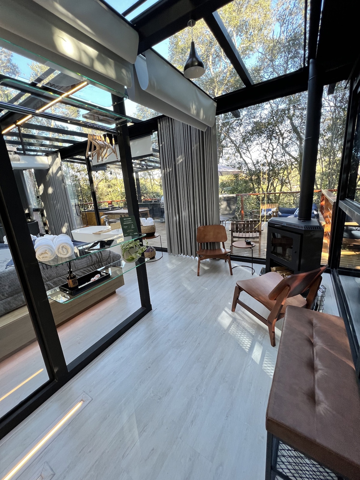 Loft São José, tamamen cam kaplı (tavan ve duvarlar), motorlu tavan perdeleri, 100'' projektör, iç daldırma küveti, iç şömine, ateş çukuru, dış jakuzi, sauna ve dış salon ile tam ve lüks bir kulübedir. Hepsi orman manzaralı ahşap bir teras ve geniş dış alan üzerine inşa edilmiştir, doğayla teması tüm konfor, lüks, mahremiyet ve teknoloji ile birlikte yaşamak için. En iyi anlarınız burada!