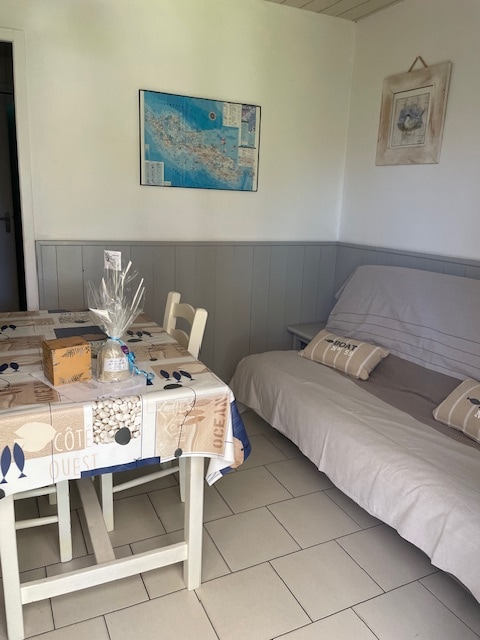 🏡 Maison de charme dans résidence sécurisée avec piscine 🏊 (juillet à septembre) et parking privé 🚗. À 600 m du port de La Flotte et 500 m des plages 🏖️ et commerces 🛍️. 🛏️ 1 chambre parentale + 1 chambre avec lits jumeaux 👧👦. 🛁 Salle de bain, rangements, linge de lit fourni ✅ (serviettes en option 🧺). ✨ Maison confortable, fonctionnelle et chaleureuse, idéale pour un week-end ou des vacances en famille. Profitez pleinement de l’Île de Ré ! 🌞🌊 À très bientôt ! 🌞