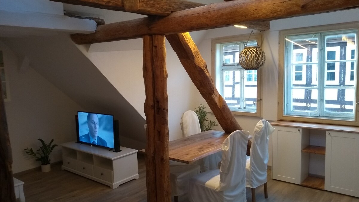Çatı katındaki dairenin bir yaşam alanı vardır. Wi - Fi ve Akıllı TV, 2 kişilik uyku alanı, banyo ve küçük bir küçük mutfak. Bodrumda çamaşır makinesi, bulaşık makinesi, fırın ve ocak bulunan komple bir mutfak mevcuttur. Bahçede bahçe havuzunda bir oturma alanı vardır. Barbekü tesisleri. Elektrik istasyonu 50 m uzaklıkta. Süpermarket 10 dakika yürüme mesafesindedir. Otobüs durağı 2 dakika. Hildesheim'a arabayla 10 dakikalık mesafede.
