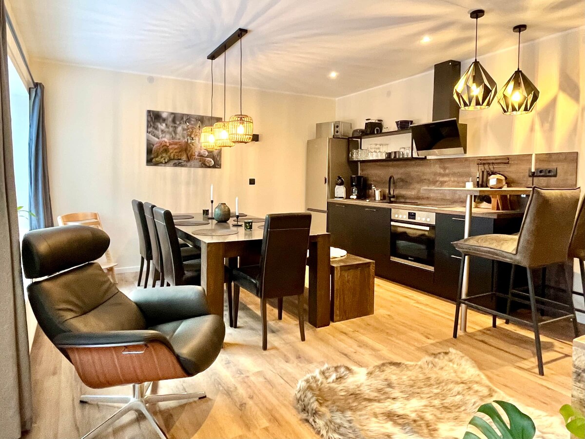 Aile veya arkadaşlarınızla (6 kişi) rahat bir tatil. Bu şık konaklama yerinde tüm ailenizle birlikte eğlenin. Tarihi koruma altındaki evimiz 200 yıldan daha uzun bir süre önce inşa edilmiştir. Daire yeni yenilenmiş ve yeni döşenmiştir. "Birke" evin 1. katında yer alır ve 2 kata yayılmıştır. 1400 m²'lik bahçe, enerji depolamanızı veya kendinizi dışarıda eğlendirmenizi sağlar. Kendi oturma alanına ve barbekü imkanına sahip bahçe mobilyaları sizi dinlenmeye davet ediyor.