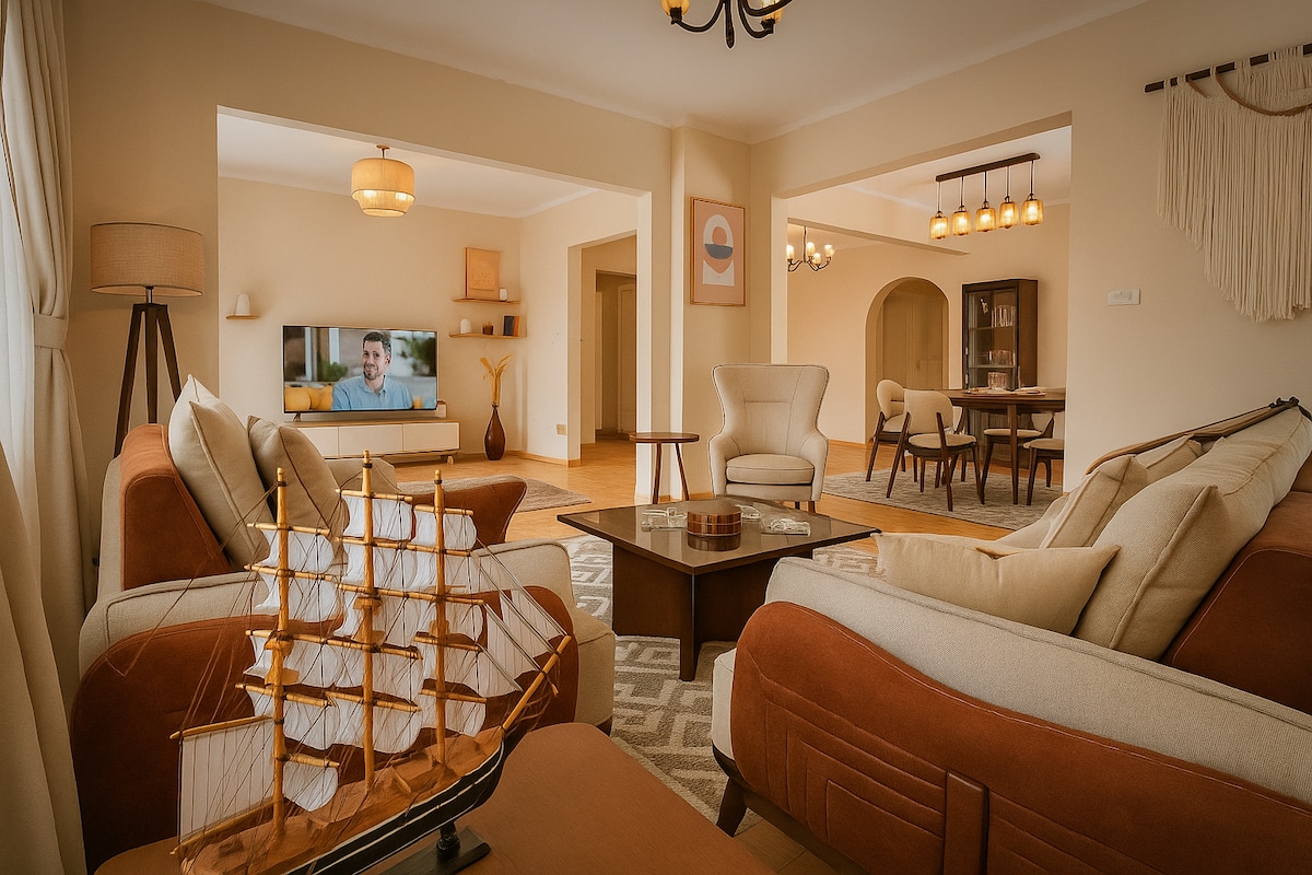 Kahire'nin merkezindeki rahat kaçamağınıza hoş geldiniz Şehrin göbeğinde mükemmel bir şekilde yer alan bu davetkar üç yatak odalı, iki banyolu inziva yeri, özenle düzenlenmiş beş yatakla 7 misafire kadar rahatça uyuyabilir. İster alan ve güvenlik isteyen bir aile ister sıcak, merkezi bir merkez arayan bir arkadaş grubu olun, bu ev konfor, bağlantı ve kolaylık sunmak için tasarlanmıştır. Rahatlayın. Kendinizi evinizde hissedin. Kahire'nin kalp atışını kendinizdeymişsiniz gibi hissedeceğiniz bir yerde hissedin.