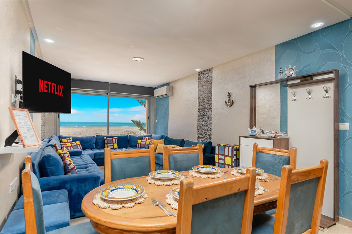 17m2'lik balkonu sahil boyunca uzanan yolun üzerinde inşa edilmiş olan tek dairedir, dalgalar, köy, balıkçılar, sörfçüler üzerinde olağanüstü bir manzara sunmaktadır. Çok konforlu, okyanusun üzerinde olağanüstü bir konaklama için özenle dekore edilmiş ve bakımı yapılmış, plaj boyunca uzanan birçok kafe ve restorana yakın ve sörf okullarına 2 adım uzaklıkta, balıkçılar, tüccarlar, dünyanın dört bir yanından sörfçüler... ve birkaç turist ile karışan bu samimi Berberi köyünün kalbinde.