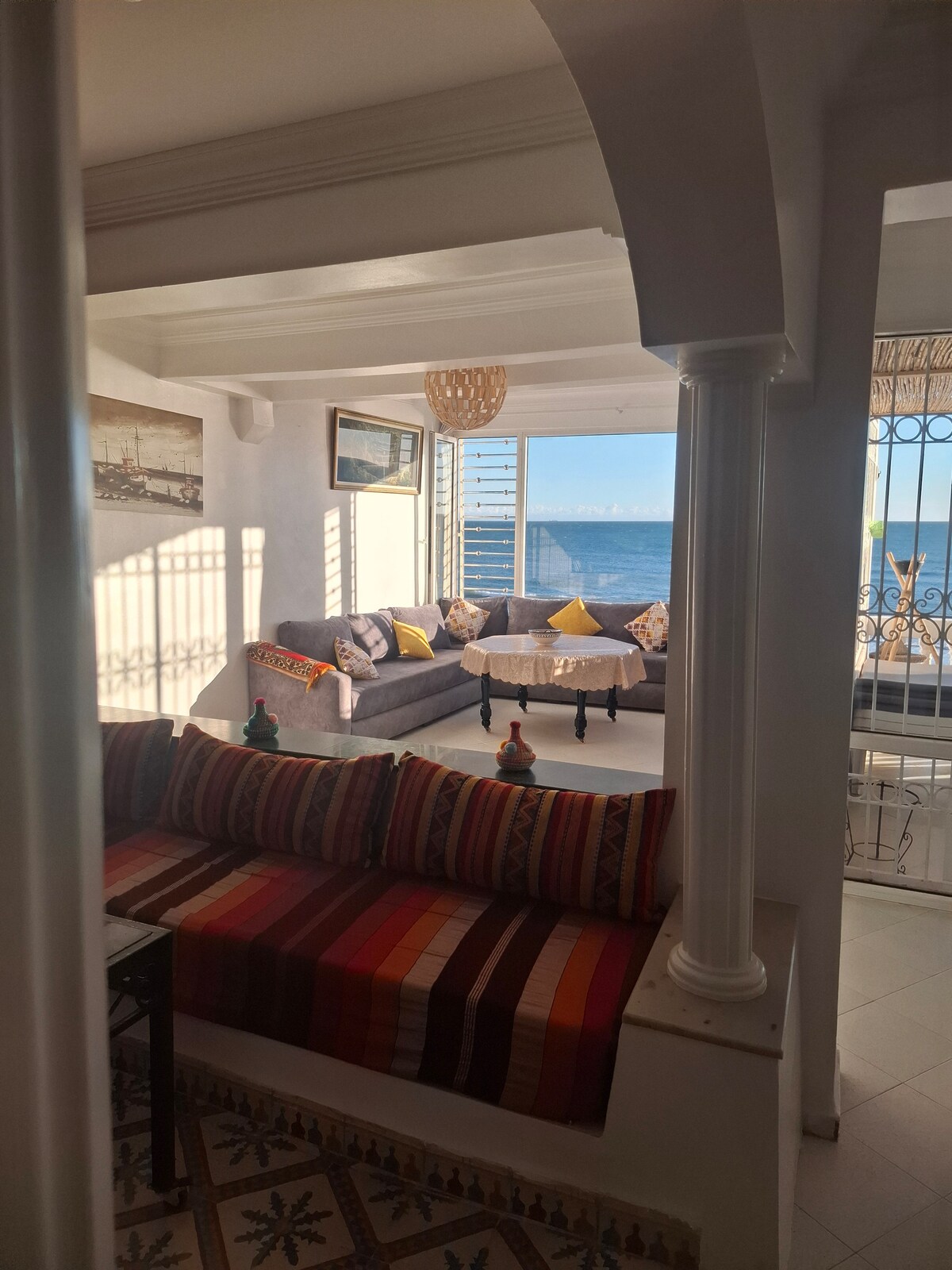 Taghazout'un göbeğinde Atlantik Okyanusu'nun panoramik manzarasına sahip lüks çatı katı. İnce malzemelerden tasarımcı mobilyalarına kadar detaylara dikkat ederek benzersiz ve sofistike bir ev. Evde ikisi çift kişilik yataklı, biri ebeveyn banyolu 4 yatak odası, iki tek kişilik yataklı bir yatak odası ve geniş bir tek kişilik oda bulunmaktadır. Okyanusa bakan pencereleri olan büyük oturma odası, denize bakan donanımlı bir mutfak ve kanepe, yemek masası ve barbekü bulunan bir teras. İstek üzerine otel hizmeti.