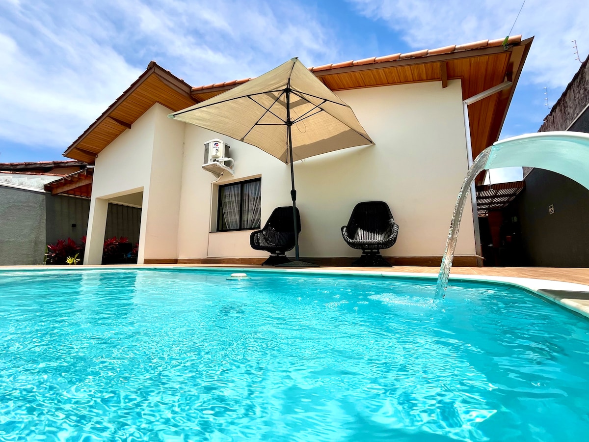 São Paulo'nun kuzey kıyısındaki deniz kenarındaki inzivanızda hoş geldiniz! Tam bir konfor, stil ve doğayla bağlantı deneyimi sunuyoruz; hepsi ayaklarınızın altındaki denizle. Bir dakikadan kısa bir yürüyüşle plajın sularına dokunuyor olacaksınız. 📍 Konum: Büyüleyici Mavi Göl'e birkaç dakika yürüme mesafesinde ve bir süpermarkete, eczaneye ve bakkala sadece 5 dakika sürüş mesafesinde. Caraguatatuba şehir merkezine 20 dakika, Ilha Bela ve São Sebastião'ya ise yaklaşık 1 saat mesafedeyiz.