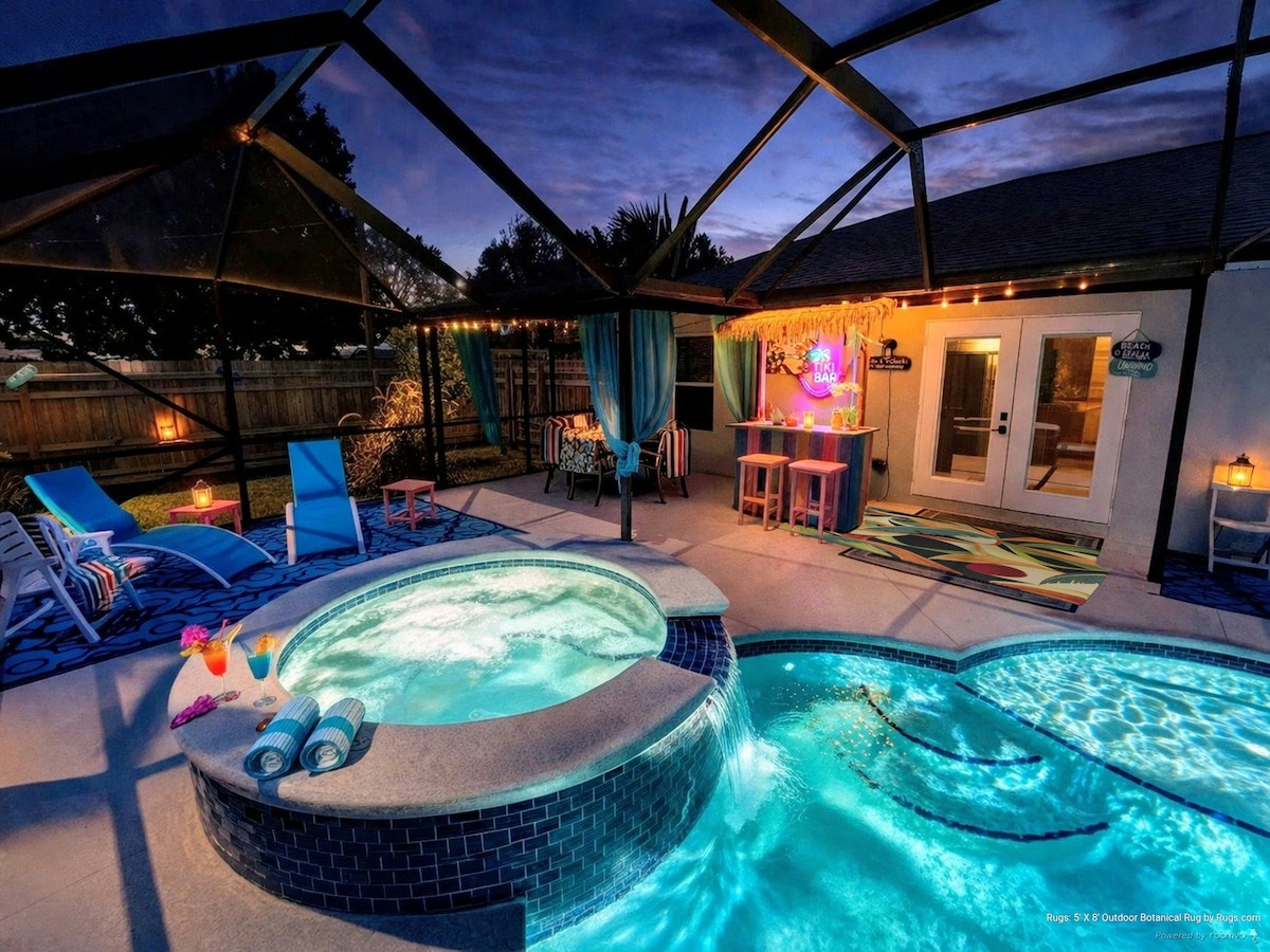 Merkezî bir konumda bulunan bu evde kalırsanız ailece her yere yakın olacaksınız, plaja 10 dakika, I95'e 5 mil ve Orlando'daki tüm tema parklarına bir buçuk saat mesafede. Bu geniş ev, 4 yatak odası, 2-1/2 banyo ve evcil hayvan dostu bir arka bahçe ile tamamen yenilenmiştir. Mutfakta 8 kişilik büyük bir ada ve sadece eğlence için gizli bir oyun evi vardır. Büyük bir kapalı verandanın, güneş enerjisiyle ısıtılan havuzun (elektrikli ısıtmaya yükseltme seçeneği ile) ve altı kişilik jakuzinin keyfini çıkarın.