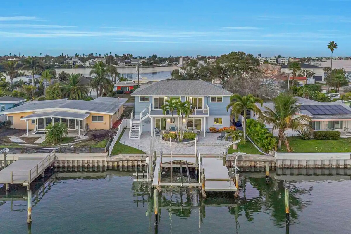 Lüks Indian Rocks Beach inzivanız Villa Azule'ye hoş geldiniz! - Büyüleyici kanal manzarasına sahip geniş 2.646 metrekarelik su kenarı cenneti. - İki king boy yataklı ana yatak odası ve bir queen boy yataklı yatak odası, 10 misafir ağırlayabilir. - Açık hava olanakları arasında tekne asansörü, propan ızgarası, ateş çukuru, bisikletler ve kanolar bulunur. - Dinlenme ve eğlence için mükemmel açık konseptli yaşam alanı. - Yerel mağazalara yakın ve plaja 10 dakika yürüme mesafesindedir. - Ücretsiz köpüklü şarap gelişinizi bekliyor.