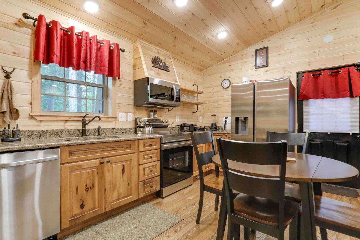 Berkeley Springs şehir merkezine 20 dakika mesafedeki bu yeni yenilenmiş kütük kulübede vahşi ve harika Batı Virginia'nın tadını çıkarın. Geniş ön verandadan ormanlık manzaraların tadını çıkarın, taş ateş çukurunun etrafında s'more yapın, kapalı güneş odasındaki jakuziye dalın, odun sobasının önünde bir kitapla kıvrılın ve sinema salonu benzeri çatı katında rahatlayın. Kulübeden dakikalar içinde özel bir göle ve inanılmaz yürüyüş parkurlarına erişebileceksiniz.