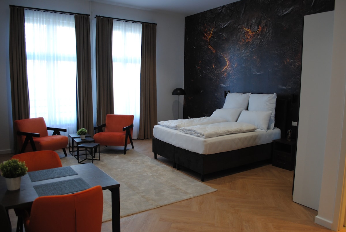 Gleisdreieck Parkı ile Potsdamer Straße arasında mükemmel bir konuma sahip modern stüdyomuzda hoş geldiniz. Tam donanımlı mutfak, geniş 180x220 cm yatak, yerden ısıtma ve yağmur duşlu modern bir banyo, konforlu bir konaklama için ihtiyacınız olan her şeyi sağlar. Güneşli verandada dinlenin ve huzurun tadını çıkarın. Mükemmel ulaşım bağlantılarıyla birinci sınıf konum. Kafeler, restoranlar ve pazarlar yürüme mesafesindedir; Berlin'i keşfetmek için mükemmeldir!
