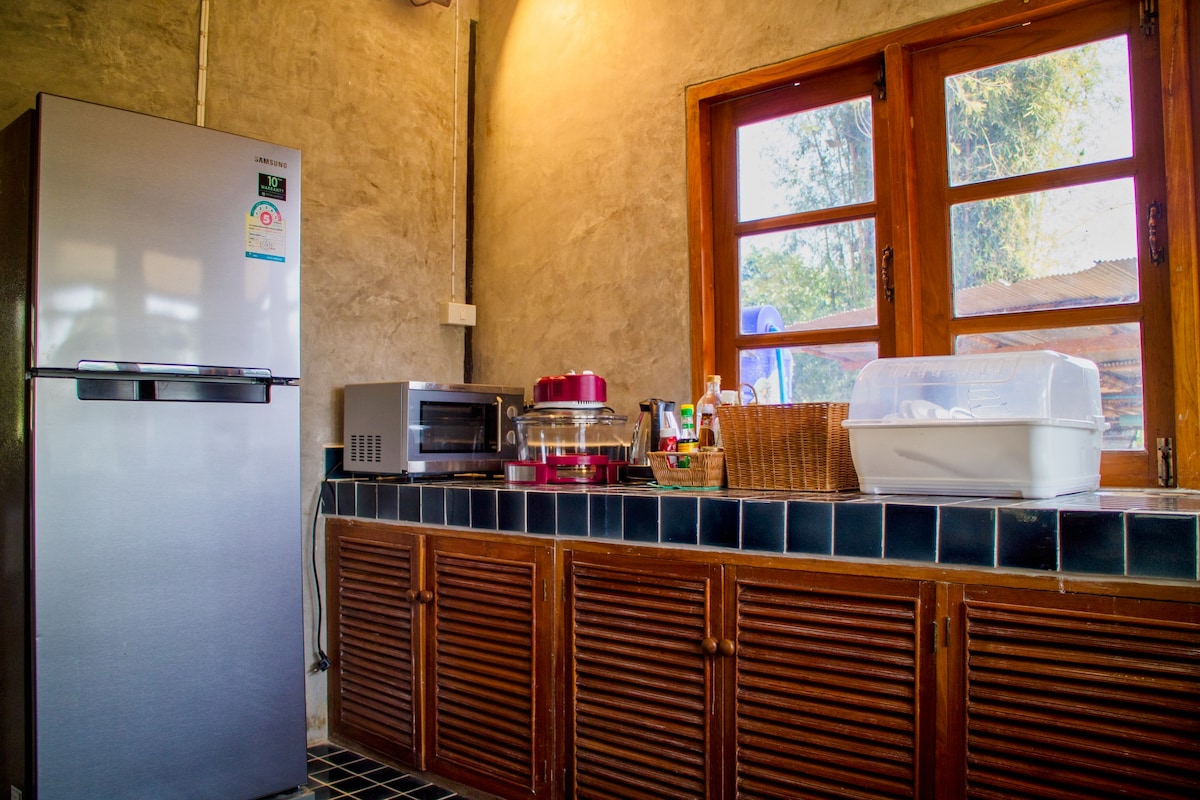 Hafif ve hafif sosyal komşuları olan bir topluluktadır. Ev 100 metrekarelik bir yaşam alanına sahiptir. Evinizdeymiş gibi sıcacık. Sadece sahibiyle aynı alanda bir oda değil, arkada mahremiyet de var. Doi Luang'ın yakın manzarası. Doi Nang. İyi atmosfer. Mülkün önünde ücretsiz park yeri bulunmaktadır. İlçeye 7 kilometre mesafededir. Toplulukta yürüyebilir ve hayatı deneyimleyebiliriz (yemek yok). Mutfak gereçleri var. Kendi basit yemeklerinizi pişirebilirsiniz. (İki köpeğim var ama onun bölgesinde) Evcil hayvan kabul edilmez.