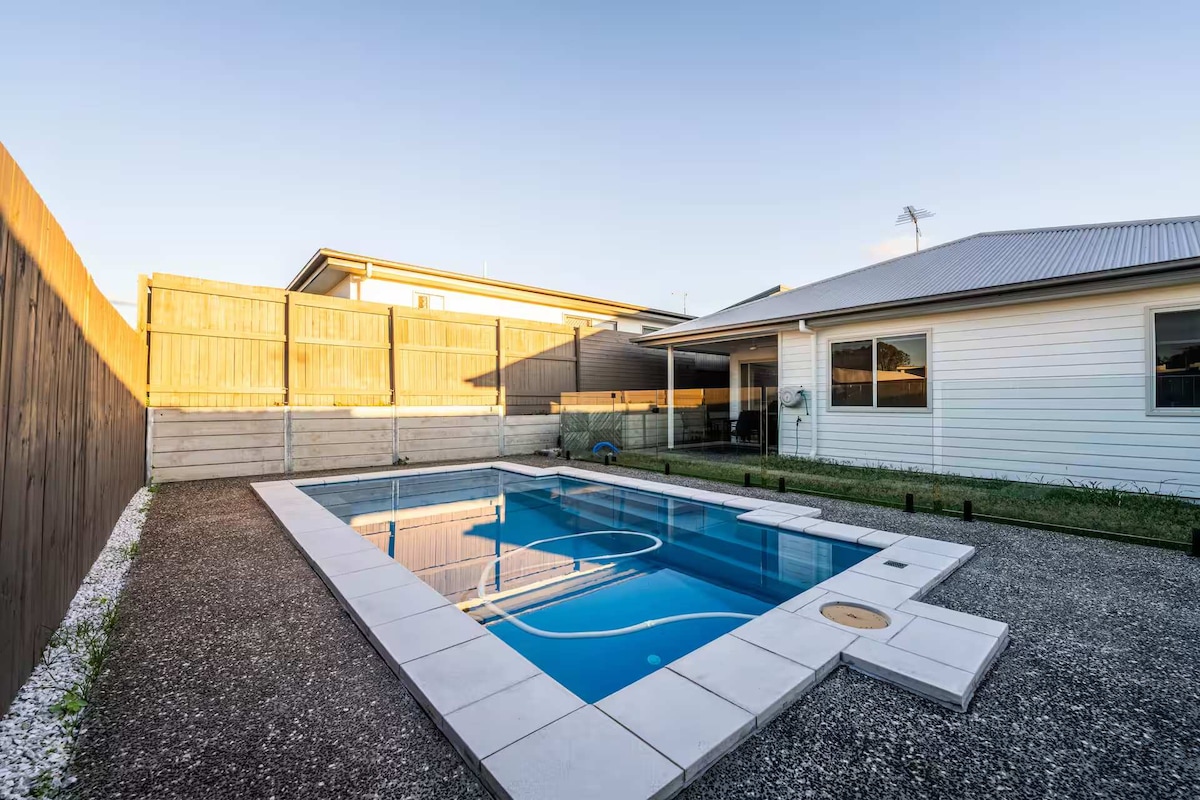 Bu ferah mekânda 2 seviyeli konfora adım atın **Jindalee Escape**. Alt katta 55 inç TV, Netflix, sallanan sandalye, masa oyunları ve kitaplarla nostaljik bir cazibe var. Üst kat, çalışma alanı olarak da kullanılabilen bir makyaj masasının yanı sıra bir bebek karyolası ve mama sandalyesi ile aydınlık ve moderndir; aileler, arkadaşlar veya profesyoneller için mükemmeldir. Dışarıda, sallanan palmiye ağaçlarıyla çevrili özel havuzunuzun ve güneşli verandanızın tadını çıkarın; dinlenmek ve güneşlenmek için idealdir. Bu evde herkes için gerçekten bir şeyler var.