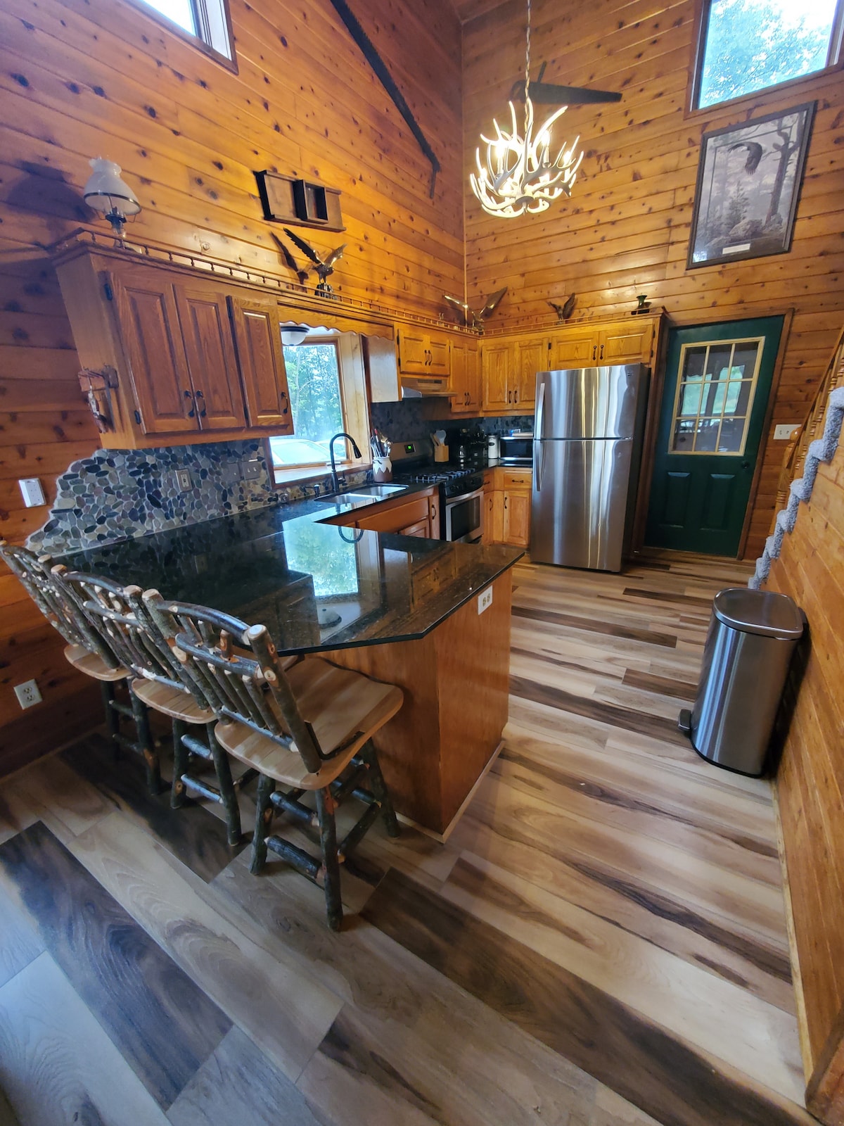 Pine Lake Lodge'a kaçın - Twin Cities'den sadece 1 saat uzaklıkta Aileler, çiftler veya küçük gruplar için mükemmel olan bu rahat 2 yatak odalı göl kenarı kulübesinde kendinizi dinleyin. Misafirlerimiz muhteşem gün batımı manzarasına sahip özel verandaya, ateş çukuruna ve ızgaraya ve 75" Roku TV'li muhteşem oyun odasına bayılıyor. Evcil hayvan dostuyuz (ücretli), çocuk dostu tonlarca ekstramız var ve ücretsiz su taşıtları (sıcak aylarda kano, kürekli tekne) sunuyoruz. Kar ayakkabıları ve kızaklarla kış eğlencesi. SnoBug Trail 108 kar motosikleti erişiminin hemen üzerinde.