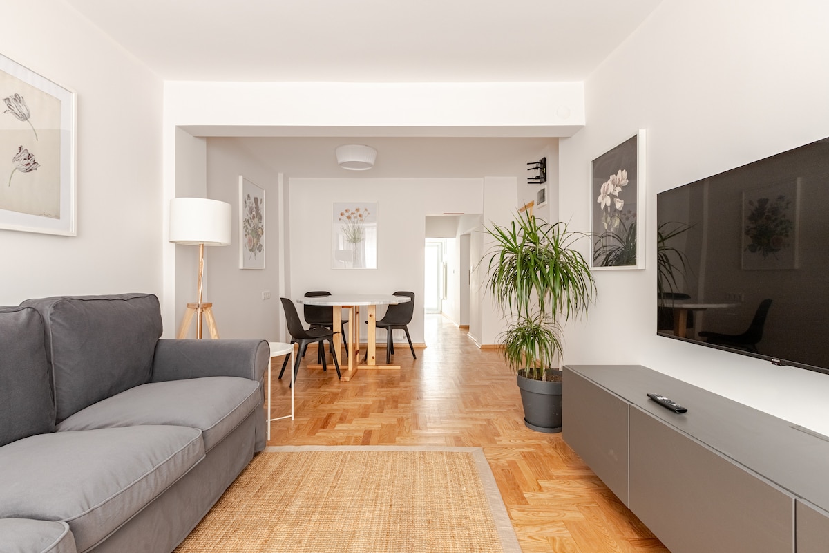 Located at the seaside of Cihangir/Beyoglu (hip area in Istanbul full of cafes, bars and galleries) this 160 m2 deluxe flat is 2 minutes walk to seaside & tramway, 15 minutes walk to Taksim city centre & subway. Designed with japandi style furnitures, this bright apartment has magnificient bosphorus view on all its rooms and areas. It accommodates up to 6 people. From espresso machine to cold water dispenser, yoga equipments or free netflix... All your needs for a dreamy holiday are available.