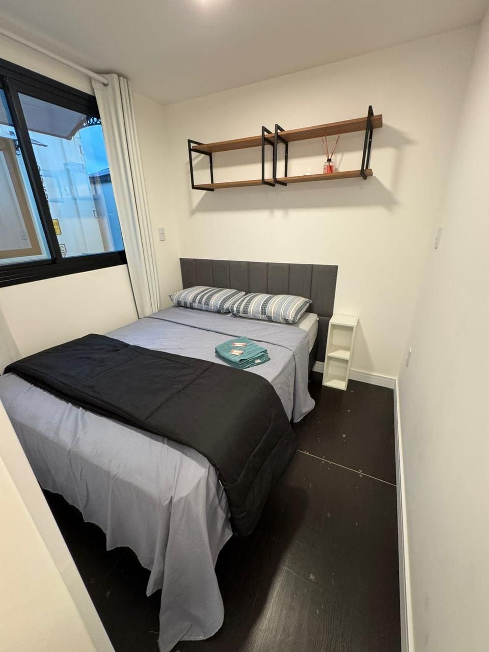 2 bedroom SHIPPING CONTAINER TINY APPARTMENT with 1 private bathroom. HIGH SEASON Rate for 4 PEOPLE. MAX occupancy 5 people. Additional R$80 for each extra guest per day. Please ensure you indicate the TOTAL NUMBER OF GUESTS when booking. Surround yourself in style in this cozy space 350m from the beach. Apartment built from recycled shipping containers, clean, airy and very well located, close to supermarkets, bakeries, pharmacies, diversified commerce, restaurants and bars.