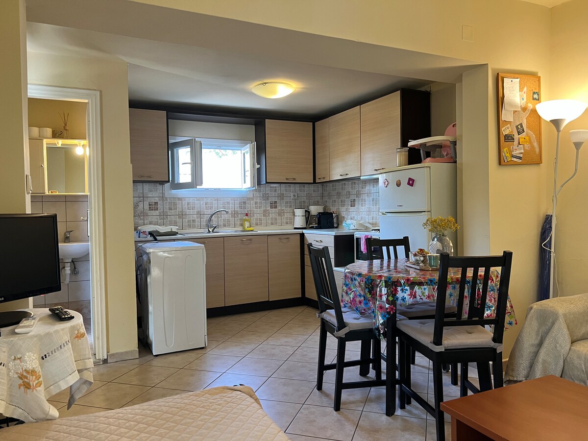 Myrtia Apartments, uygun fiyatlı aile tatili için mükemmel bir alternatif oluşturan iki güzel ve rahat dairedir! Tam donanımlı alan, dinlenme ve bağımsızlık ihtiyaçlarınızı karşılamaya ve tatmin etmeye hazırdır. Teraslardaki hamaklar, zeytin ağaçlarının altında yaz "siestası" veya akşamları bir kadeh şarap için en sevdiğiniz yer olacak. Anna ve Spiros