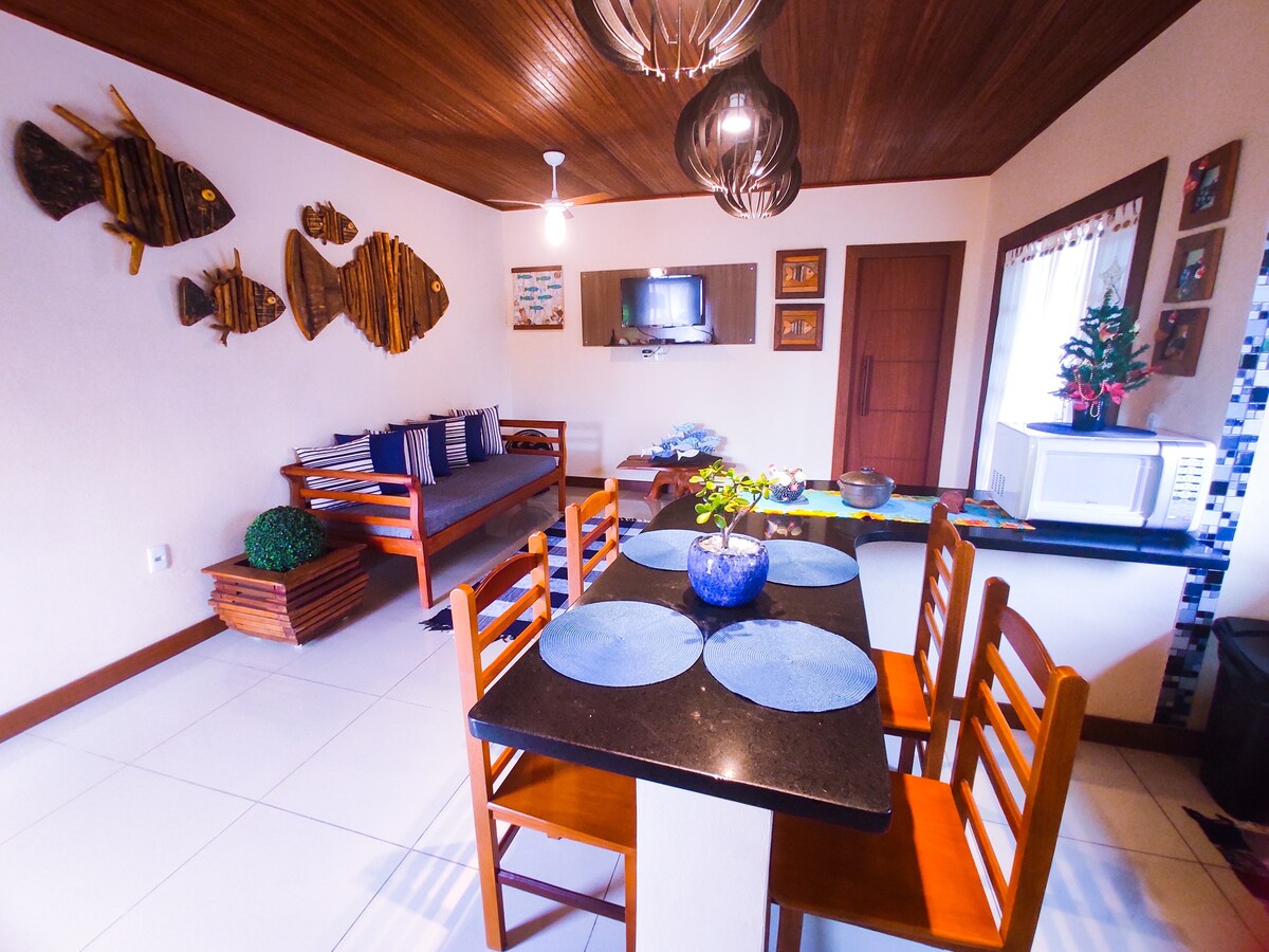Ev çok rahat ve keyifli. Çok sessiz bir yerde bulunmaktadır. Plaja 30 metre mesafededir, balkondan panoramik plaj manzarasına sahiptir. Jabaquara Plajı kano, standup pedal ve diğerleri, birçok büfe ve birçok ormancılık gibi çeşitli etkinlikler sunar. Tarihi merkeze 900 metre uzaklıktadır. OBS: GARAJ yok. Araba kaldırımın üzerinde olabilir. Sorun değil. OBS: Yatak ve banyo çarşafları sağlamıyoruz, sizden yalnızca sağlamak için bir ücret alıyoruz