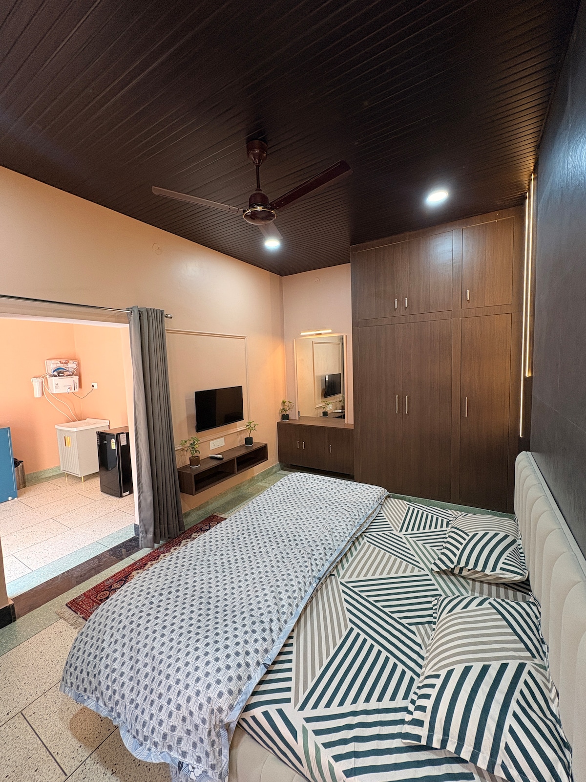 Welcome to Mahal Heights. Fully furnished 2BHK with sofa-cum bed living room, 2 baths, equipped kitchen, and a balcony with CCTV. *Complimentary Snacks/Drinks (Daily)* 🍹 ×2 Cold Drinks 🍲 ×2 Maggi 🍟 ×1 Uncle Chips & Lays 🍪 ×2 Oreo Biscuits 🍫 ×2 5-Star Chocolate 🥜 ×1 Bikaji Peanut Salted 🥜 ×1 Bikaji Bhujia 🥜 ×1 Bikaji Nutcracker 🥜 ×1 Bikaji Mix Namkeen 🥜 ×1 Bikaji Moong Daal *Note*: Daily refill of the same items is included as per your booked nights. Item choices aren’t available.
