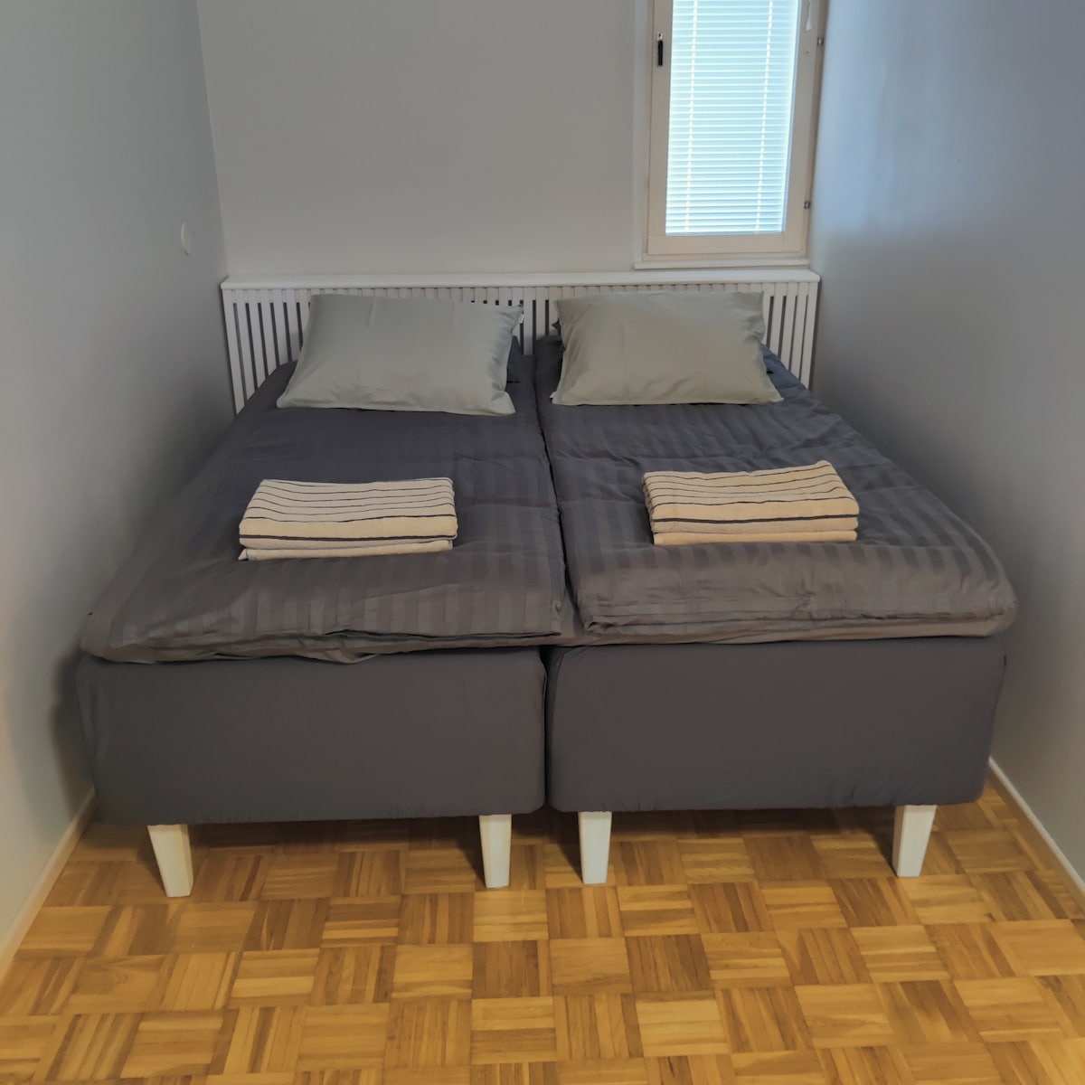 Leenala bölgesinde aydınlık, huzurlu, modern ve şık küçük bir daire. Dairede 140 cm genişliğinde çift kişilik yatak ve 1-2 ekstra yatak oluşturabilen 80 cm genişliğinde bir günlük yatak bulunmaktadır. Yaz sıcağında daireyi kendi soğutucusuyla serinletebilirsiniz. Yüzme havuzu, buz pateni pisti, hibrit arena, etkinlik parkı neredeyse hemen yanında (0,6 km). Deniz parkı, Santaha açık hava spor alanları, merkez hastane, tiyatro, Snellma müzik merkezi, tren istasyonu yaklaşık 15 dakika yürüme mesafesindedir (1,2-1,5 km).