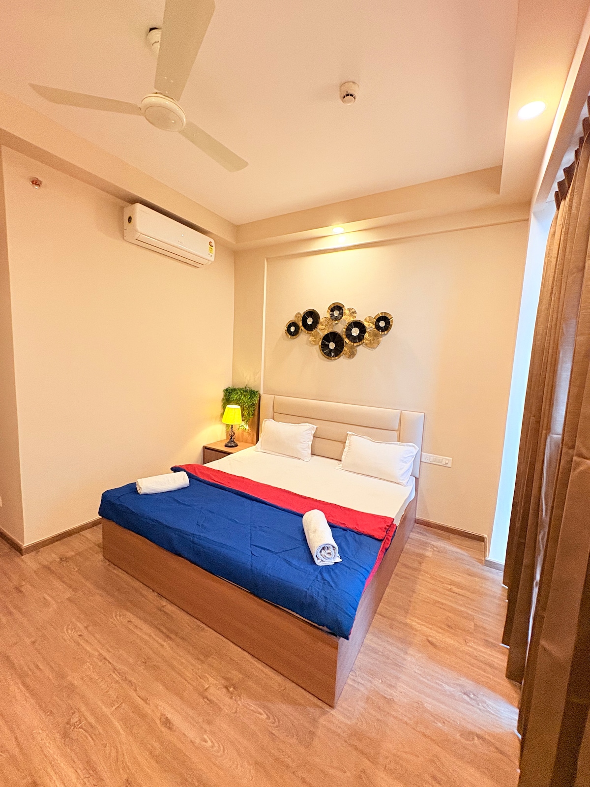 Ev sıcaklığı ve lüks bir otel havasıyla bu sakin ve lüks stüdyoda arkanıza yaslanın ve rahatlayın. Lüks bir çift kişilik yatak ve modern dekorasyonla döşenmiştir. Olanaklar: 7 gün 24 saat açık bakkal. Modern küçük mutfak Yüksek hızlı kablosuz internet bağlantısı ve TV Kulenin dışında güvenli park yeri, ancak 7 gün 24 saat güvenlikli İlk 2 katta ticari mağazalar vardır ve şunları sunar: Çamaşırhane hizmetleri Salon Kafe Tıbbi malzeme mağazası India Expo Mart, Buddh International Circuit'e kolay erişim. Çiftler, yalnız seyahat edenler veya iş ortakları için mükemmeldir.