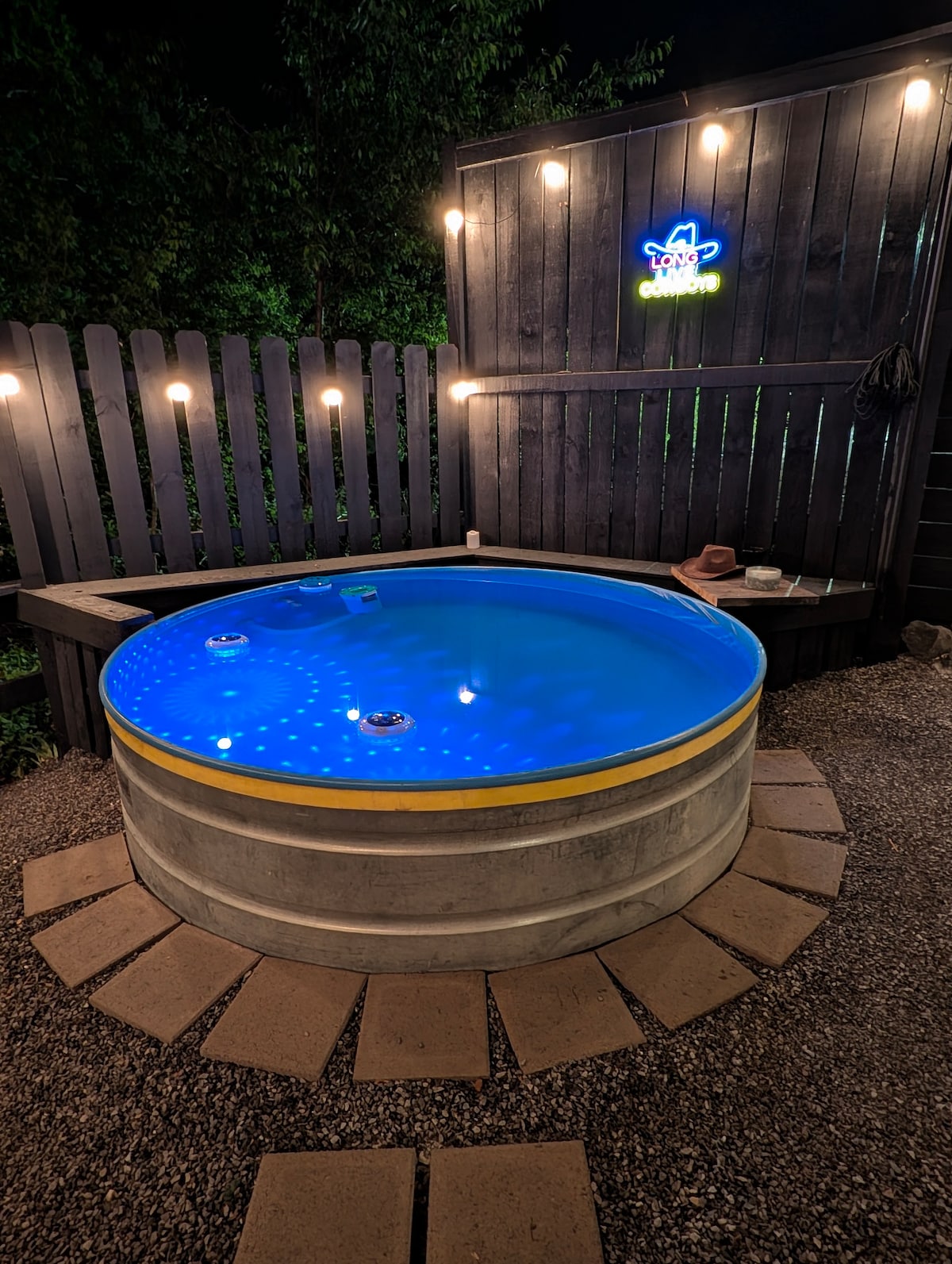Kovboy kulübesi arka bahçesinde kovboy havuzlu inziva