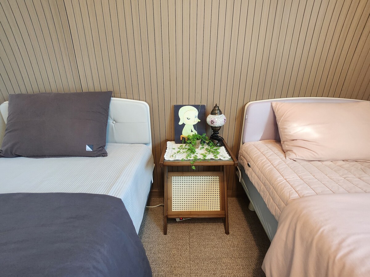 1. Bu, bir iç mimarın 2024 yılının Mart ayında yeni inşa ettiği bir evdir! - Birden ona kadar her şey %100 yeni! 2. Barbekü partisi mümkündür (açık havada elektrikli ızgara ve diğer ekipmanların kullanımı için 15.000 KRW ek ücret uygulanır) + Dışarıda bir masa koyup parti yapabilmeniz için ücretsiz olarak ayarlıyoruz! 3. Ateş yanında eğlenebilirsiniz (kavrulmuş patates, şekerleme vb. pişirmek için idealdir) - Bir kutu meşe odunu: 20.000 KRW! (Maliyet ödemesi) 4. Hanok Village arabayla 10 dakika mesafede 5. Hijyenik tek kullanımlık şampuan, saç kremi, diş fırçası vb. 6. Pencerelere otomatik havalandırma tesisatı kurulur - ince toz endişesi yok! 7. Çıkış 12:00 / Giriş 15:00 (Eşya depolama mümkündür) 8. 2 adet sistem klima (2024 model) 9. Park yeri: Evin hemen yanında 10. 2 tek kişilik yatak + 3 yatak matrisi + 2 katlı yatak (Nevresim takımı - lüks marka) *Misafirler çıkış yaptıktan sonra kullanılan tüm yatak takımları %100 değiştirilir * %100 temizlik ve tüm odalarda sterilize ederek kurutma işlemi gerçekleştirilir