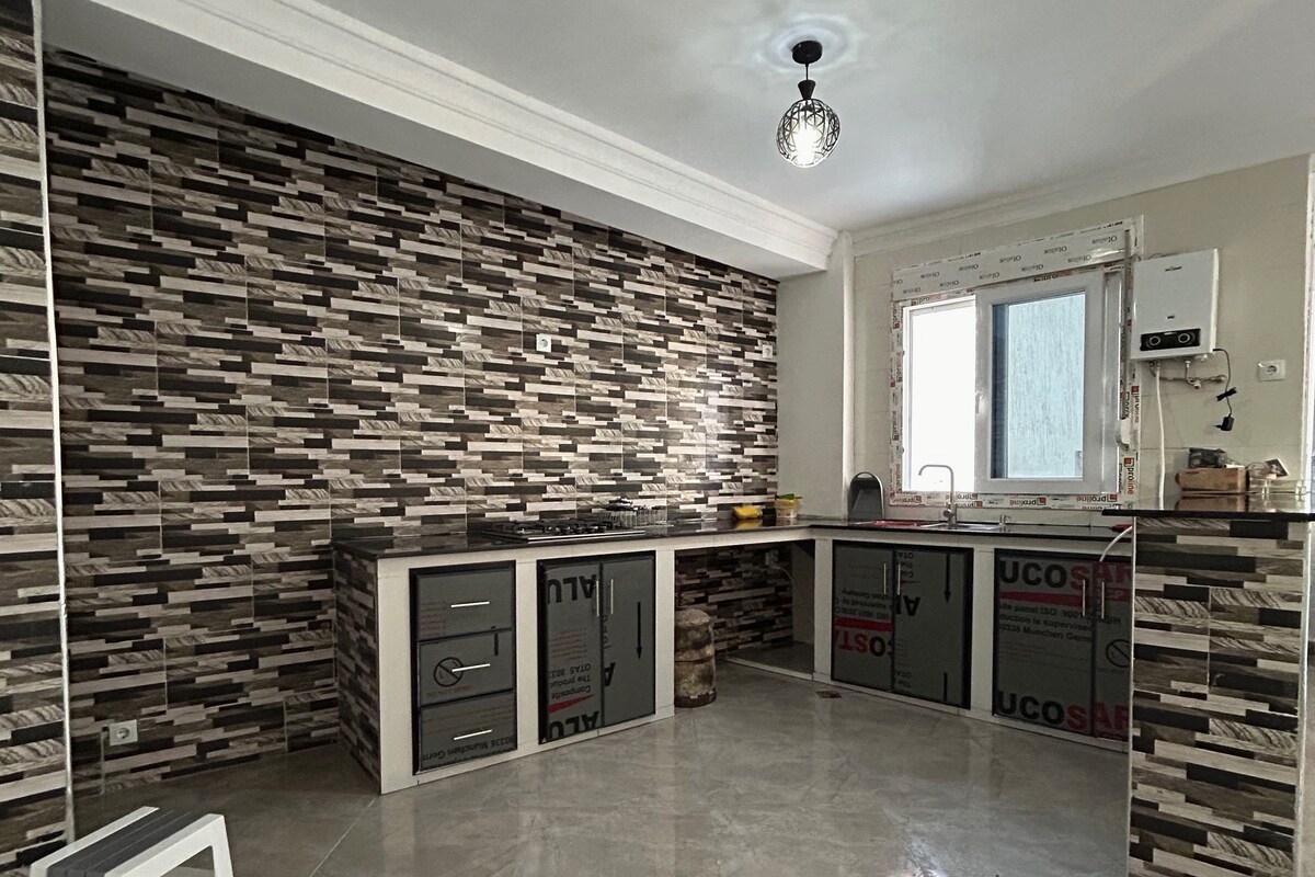 Zemin katta, Jijel şehir merkezinde bulunan mobilyalı daire kiralama, TV, ısıtma, ücretsiz çamaşır makinesi, 24 SAAT sıcak soğuk su ile donatılmış 3 yatak odasından oluşan mobilyalı daire kiralama, araba için wifi ve internet garajı ile donatılmış çok sessiz ve güvenli bir yer, La Plage'ye 1,2 kilometre uzaklıkta camiye 100 m mesafede tüm dükkanlar ve restoranlar çok yakın ve her zaman yardıma yakınım ve teşekkür ederim ve hoş geldiniz.