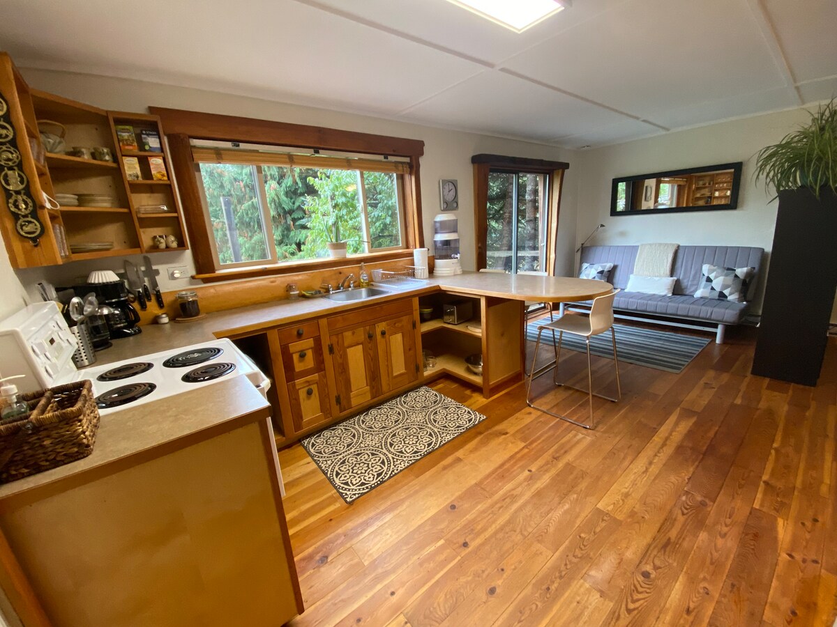 Yıl boyunca özel jakuzide yıldızların altında keyfinize bakabileceğiniz bir doğa inzivası… güneş, yağmur veya kar! Rahat mobilyalı kapalı bir teras. Bir battaniyeye sarın ve propan ateşinin yanında oturup altın çerçeveli bardaklardan bir şeyler yudumlayın. Tam donanımlı mutfak! Kimseyi görmeyeceğiniz yosunlu nehir kenarı patikasında dolaşın. Güzel küçük ev, ahşap salıncaklar kendi açık hava kahvaltı barınızda kalın kenevir halatıyla asılı. Buradan bir göle yürüyüş yapın, balığa çıkın, Whistler'da kayak yapın. Lüks çarşaflarda uyumak için sürüklenin.