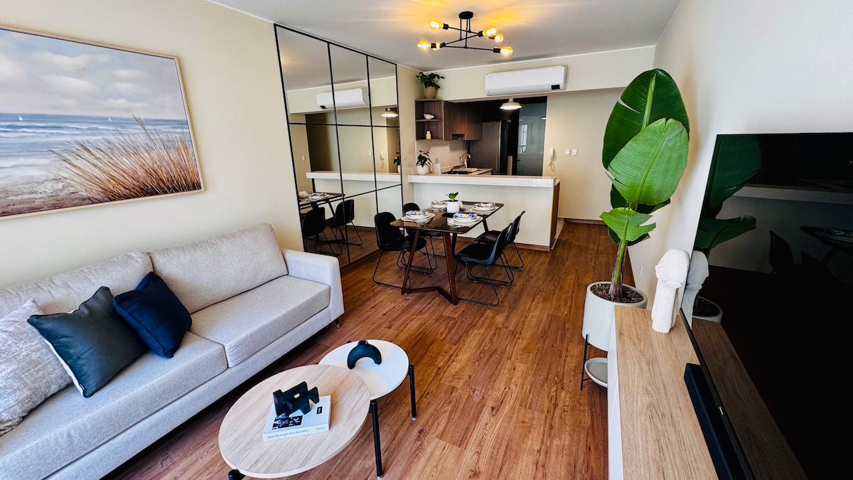 Enjoy the unique vibe of Miraflores from this beautiful newly remodeled loft, perfect for those seeking comfort, style, and an unbeatable location! Located just half a block from Kennedy Park, you’ll be surrounded by cafés, restaurants, cultural life, and the vibrant Lima energy that makes the city unforgettable. What you’ll love about this place: Modern and cozy design in a quiet space with partial city views Just a 7-minute walk to Larcomar and the Malecón, perfect for watching the sunset