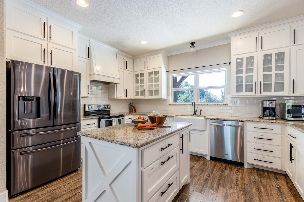 Relax with the whole extended family at White Oak Gathering, our beautiful 7 bedroom country manor. Our thoughtfully designed 4,000 sqft space was made to accommodate 2-3 families, with 2 of the 7 bedrooms being adjoining kid rooms with access through the main bedrooms. We have swimming pool access, dedicated work-study spaces, a modern large kitchen, and lots of fun different nooks to explore. We are 15mins from Alvarado lake for some of the finest fishing and just 50mins from DFW Airport