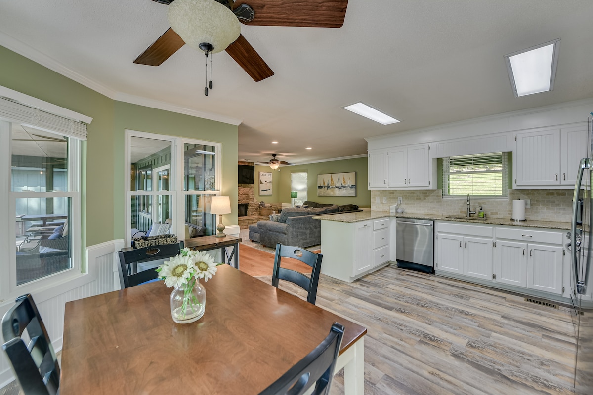 Come enjoy the beauty of Lake Greenwood from this custom fully renovated gem. Whether you prefer to float in the cove or boat the lake this place is a perfect, family friendly get away. 3 bedrooms, 2 bathrooms, open floor plan with family room leading to a custom kitchen and adorable sitting nook. Massive deck offers outdoor dining and plenty of space to relax. An easy walk to the brand new dock that is big enough for your boat and plenty of water fun. Come stay and enjoy our lake getaway!