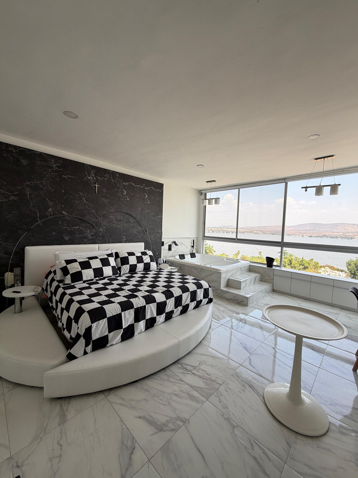 Teques'te doğrudan göl kenarında, özel havuz, 5 kişilik jakuzi, 7 yataklı 4 yataklı 4 yatak odası. Şehir merkezine yakın. Tesis temizlik personeli (dahil) Otomatik kapı, grubunuz için mahremiyetli ev. Evin her odasından muhteşem gün doğumlarını izleyin. Koşu bandı ve ağırlık merkezi olan yeni bir açık hava kapalı spor salonumuz var. Yoga matları ve masaj için spa. Ayrıca mülkte masa tenisi, langırt, karaoke, kart masası ve TV/stereo bulunan ayrı bir oyun odasını da yeni bitirdik.