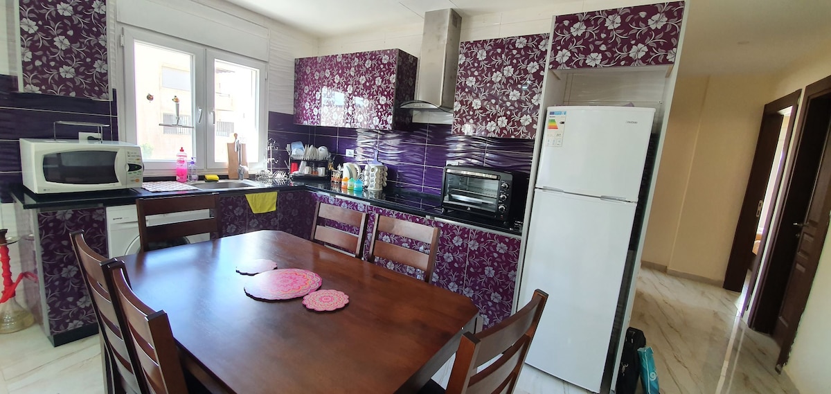 Sessiz bir semtte, geniş bir oturma ve yemek odası, özel balkonlu dinlenme odası ve tam donanımlı ferah bir mutfağa sahip, iki yatak odalı güzel ve modern bir daire (150 m²). İki banyo. Terastan Amman'ın harika manzarası görünüyor. Bir süpermarket, bir fırın, bir eczane ve toplu taşıma araçlarına 5 dakika mesafede. Khalda ve Al-Madina'nın hareketli sokaklarına 10 dakika mesafede. İyi bir gece uykusu çekmeyi sevenler için konumu harika.